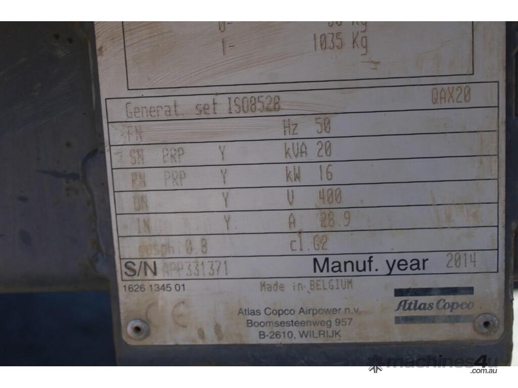2014 Atlas Copco QAX20 :      $9,900 AUD($10,890 Inc. GST)