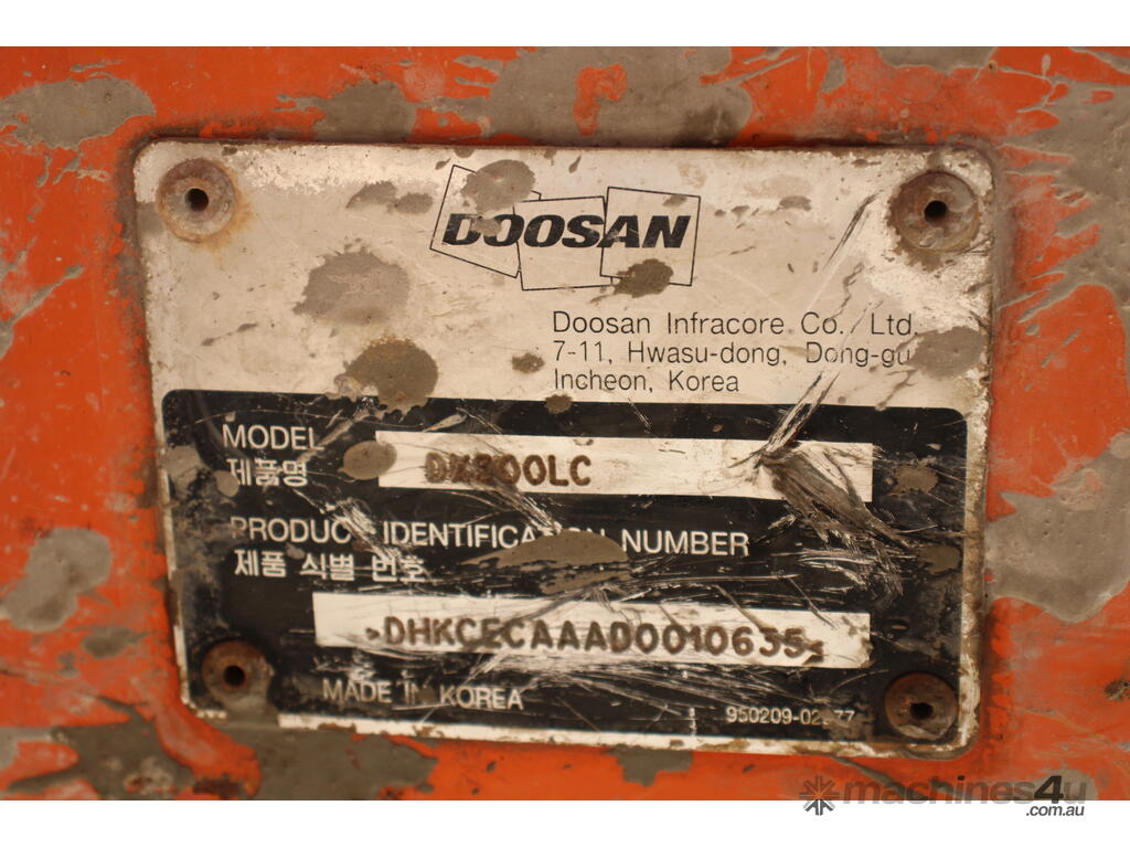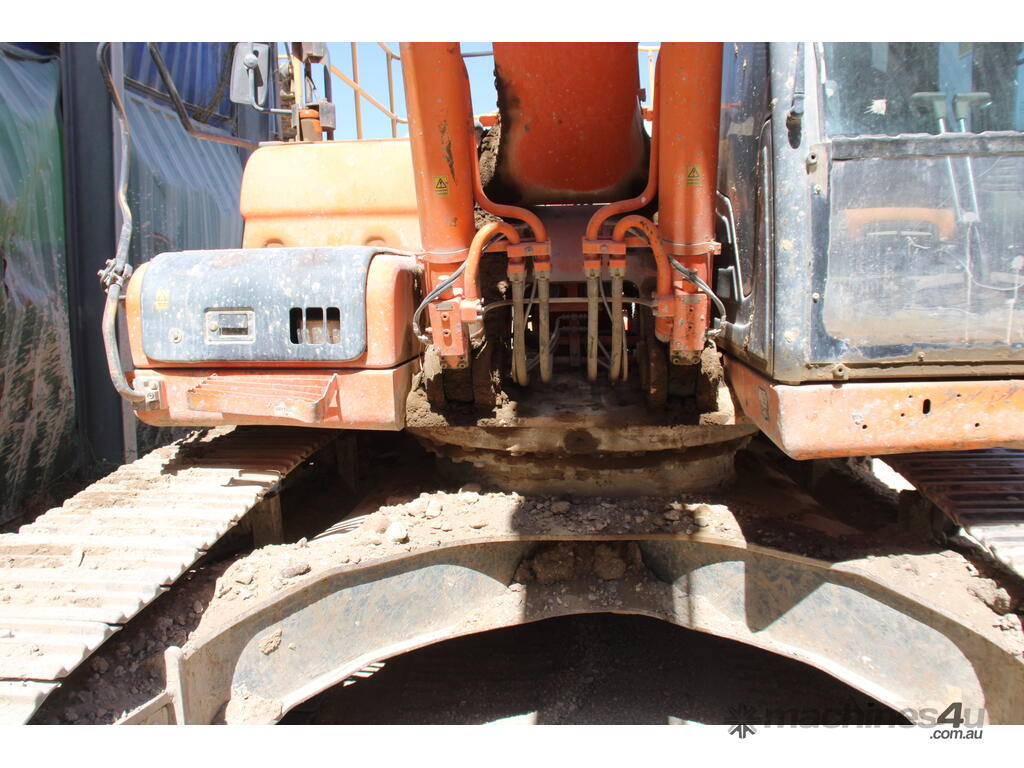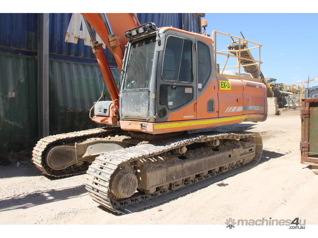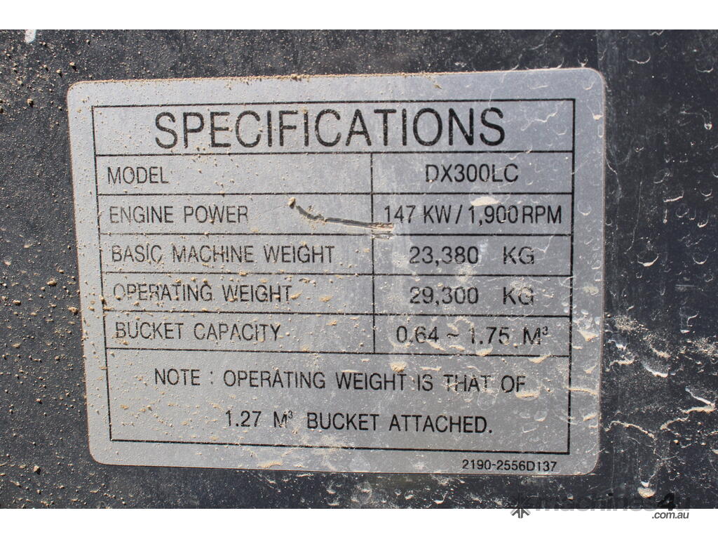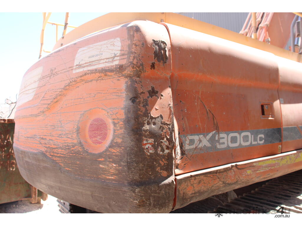 Excavator, Make: Doosan, Model: DX300LC, DOM: 2014, Serial: DHKCECAAAD0010635, Hourmeter: 11,472 Hrs Showing, Quick Hitch with 1500mm GP Bucket. Note: Impact Damage to Leftside and Rightside engine covers.