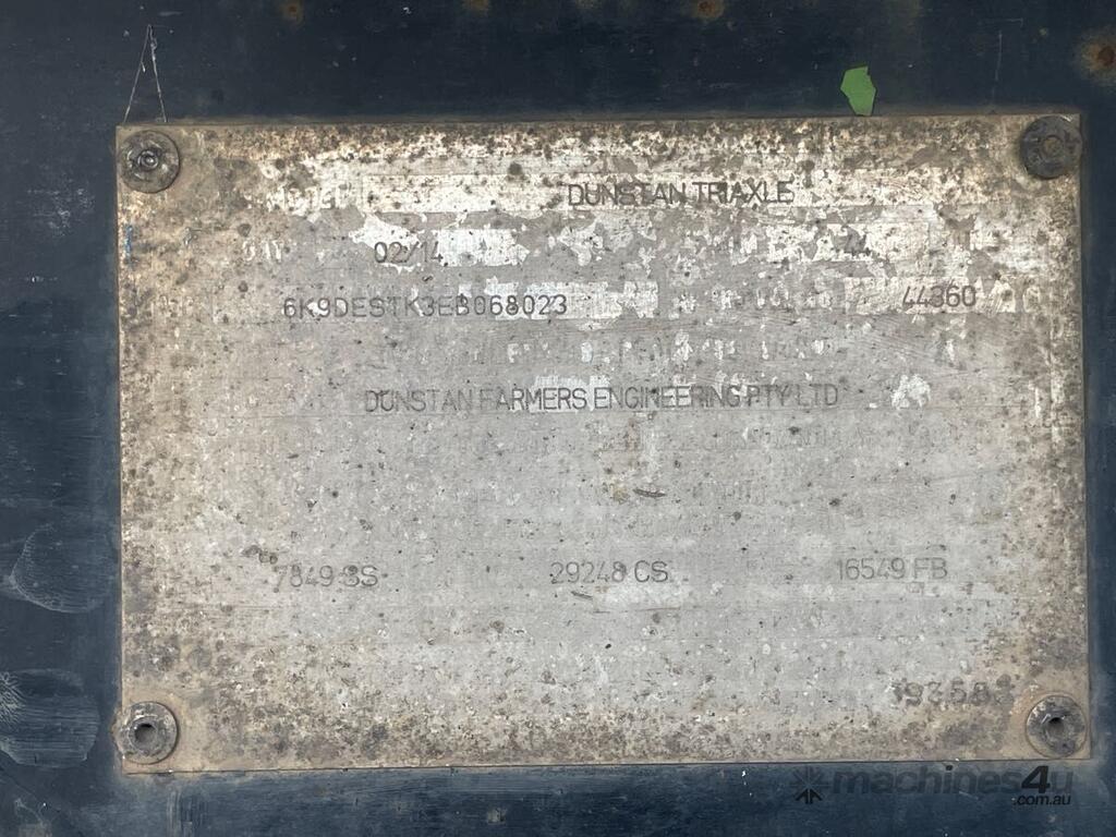 CP: 02/2014,Built: 02/2014,Dunstan,TriAxle,Tri Axle Vacuum Tanker Trailer,Hubometer not visible,Colour: White,Unregistered QLD,VIN: 6K9DESTK3EB068023,Sold with No Plates