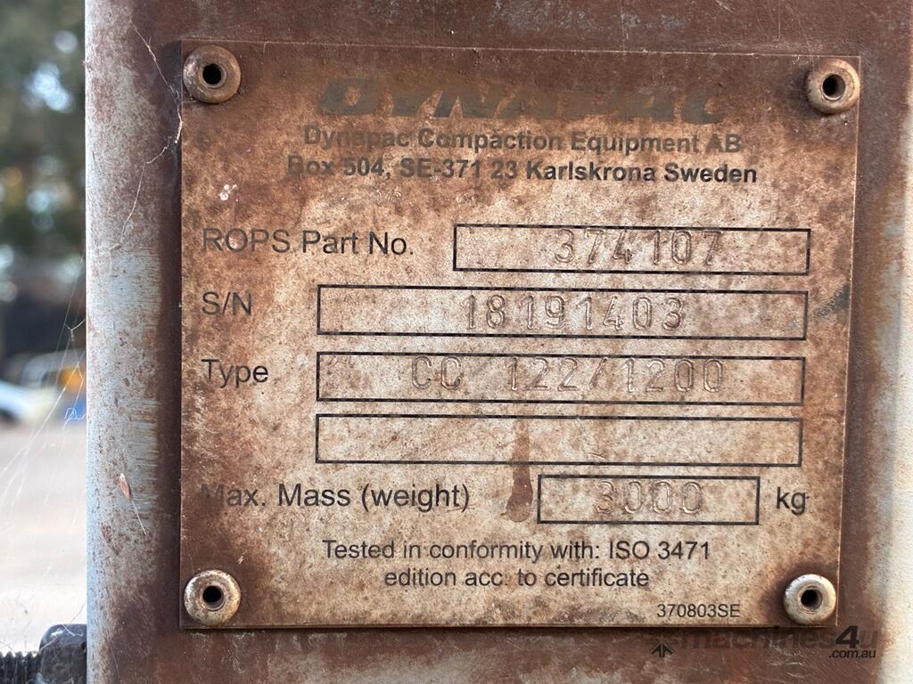 CP: CIRCA 2014,Dynapac,CC1200,Dual Smooth Drum Roller,3 Cyl,Diesel,Odometer not visible,4388 (Hrs. Showing on Hour meter),Colour: Yellow,Rego. No: NP(1BZ4WO), Unregistered,Serial No: 10000332E0A013758,ROPS No: 18191403,Sold with No Plates