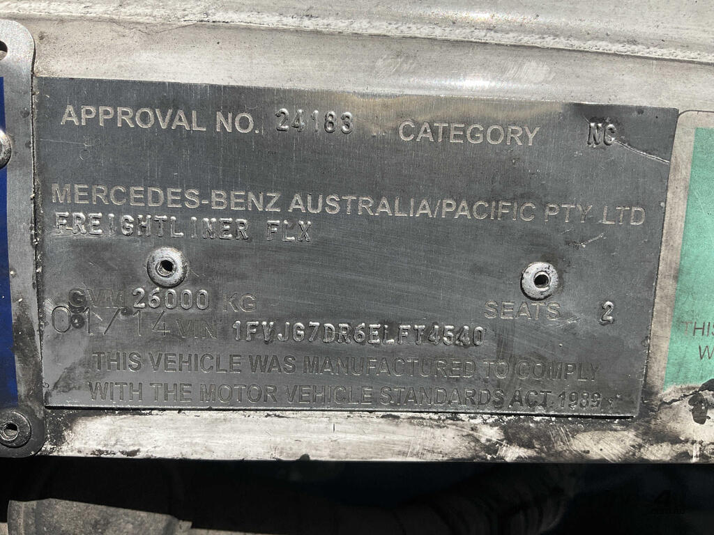 CP: 01/2014,Freightliner,Coronado,Prime Mover,Automatic,Airbag,Diesel,Odometer not visible,Hourmeter not visible,Colour: White,Unregistered,VIN: 1FVJG7DR6ELFT4540,GVM: 26000,Sold with No Plates