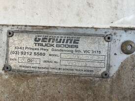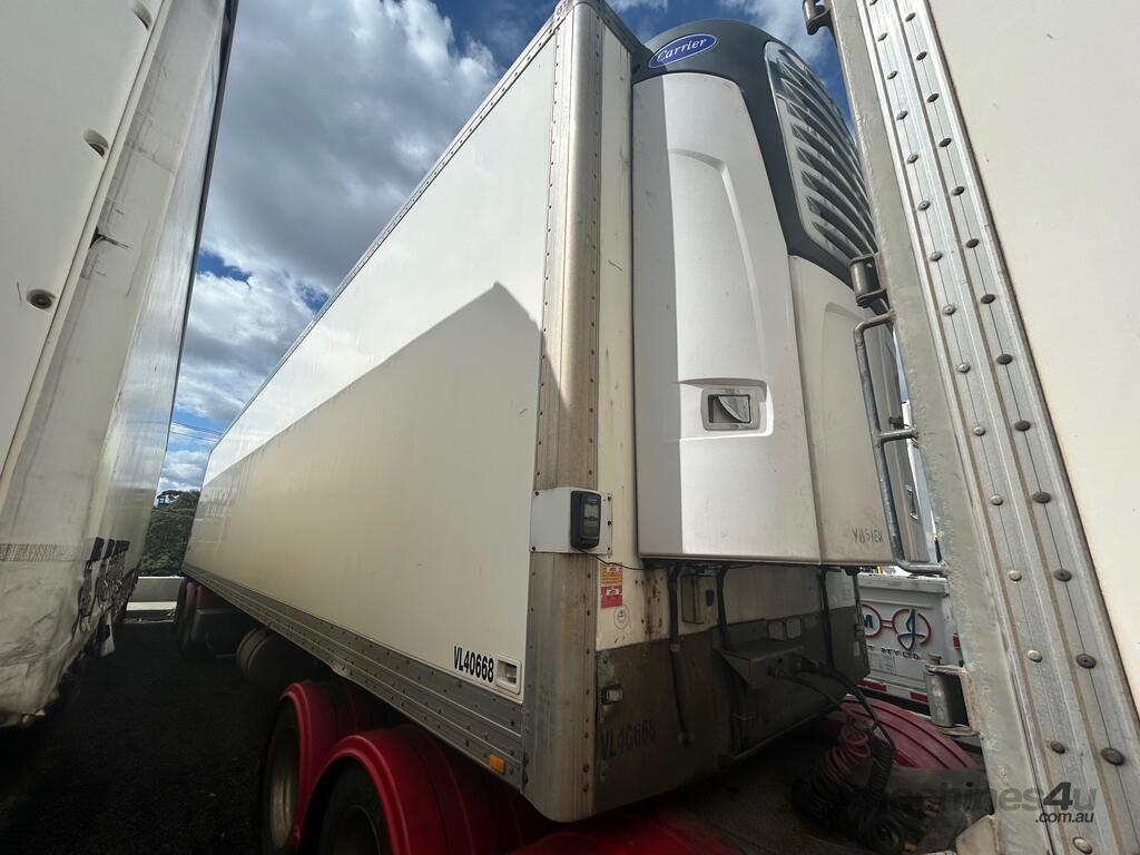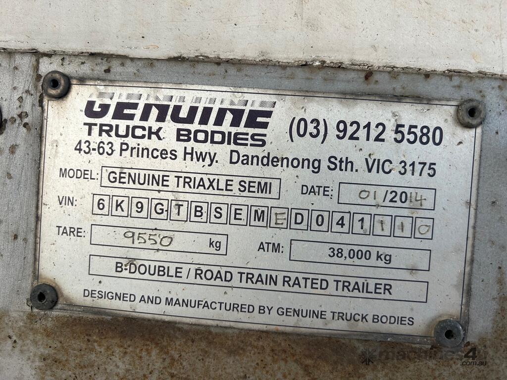 01/2014 Genuine Truck Bodies GTB-FZ-TR-3 tri axle 42 foot 20 pallet refrigerated trailer, Vector 8500 refrigeration system, tyre carrier, tool box, rear barn doors. REG: Cancelled VIN: 6K9GTBSEMED041110 TARE: 9550kg ATM: 38000kg B-Double and Road Train Rated