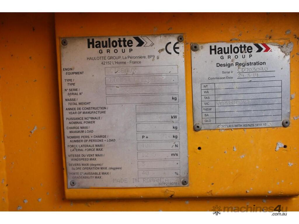 2014 Haulotte Compact 12DX 4wd :      $22,000 AUD($24,200 Inc. GST)