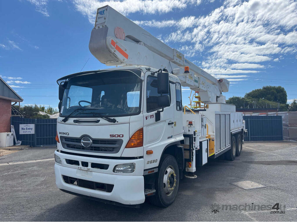 CP: 11/2014,Hino,FM 500 2630,EWP,Automatic,Leaf Spring ,Engine #: A09CTT10523,6 Cyl,Diesel Turbo,29639 (Kms. Showing on Odometer),Hourmeter not visible,Colour: White,Rego. No: SB18JV SA,VIN: JHDFM1ARMXXX10219,Key No: P23,Length: 10.7 m,GVM: 26000,GCM: 36500,Sold with No Plates,Key No: P23