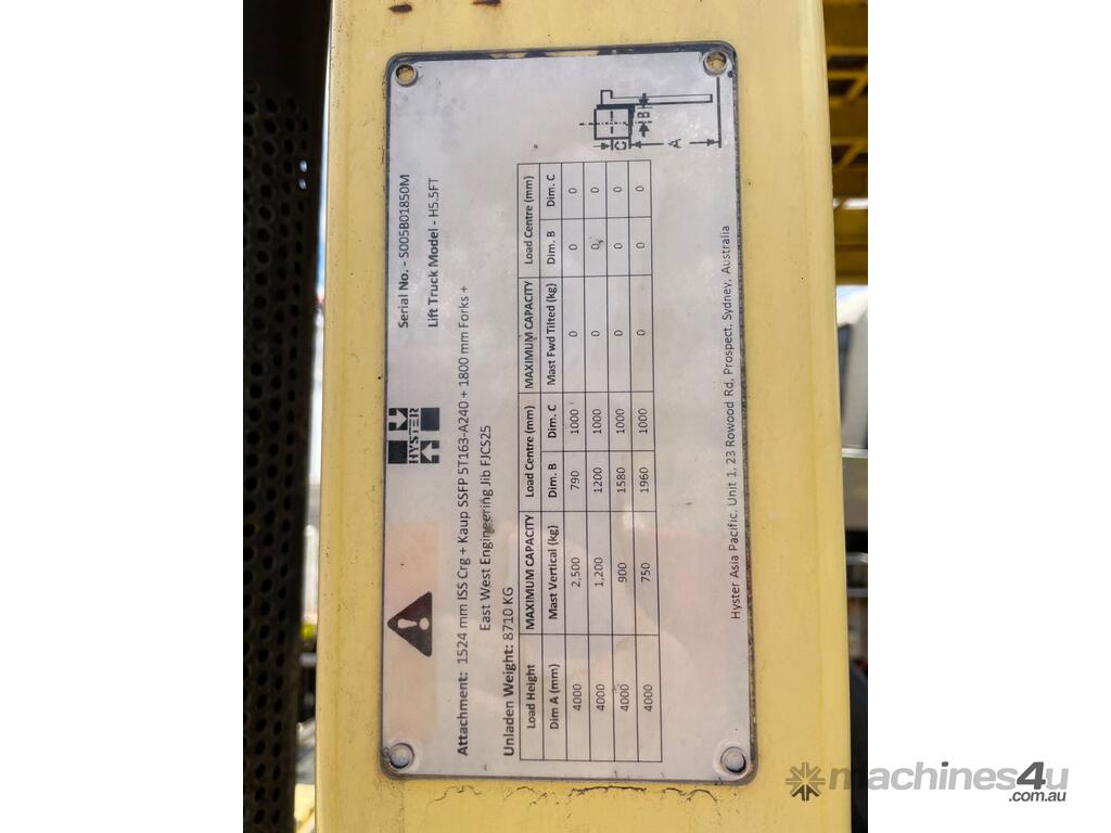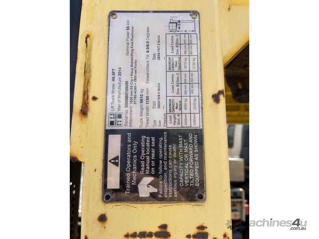 CP: CIRCA 2014,Hyster,H5.0FT,Forklift,Diesel,Odometer not visible,Hourmeter not visible,Colour: Yellow,Unregistered,Serial No: S005B01850M,Sold with No Plates