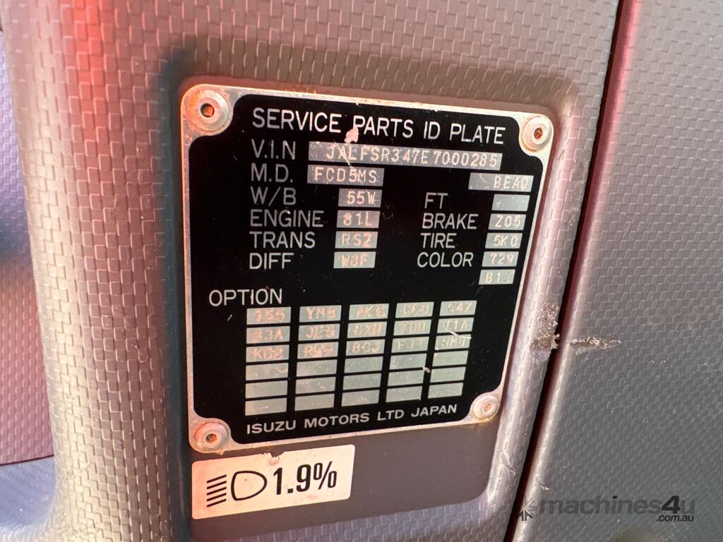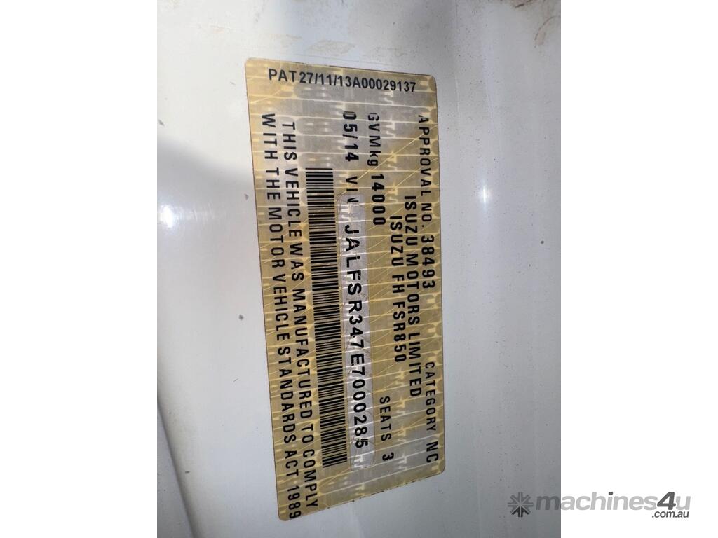 CP: 05/2014,Isuzu,FSR 850,Tilt Tray,Manual,airbags,6 Cyl,Diesel,Odometer not visible,Hourmeter not visible,Colour: White,Rego. No: NP(XO17QN), Unregistered NSW,VIN: JALFSR347E7000285,GVM: 14000,GCM: 20000,Sold with No Plates,WOVR Status: Repairable Write-Off,Incident Type: Impact