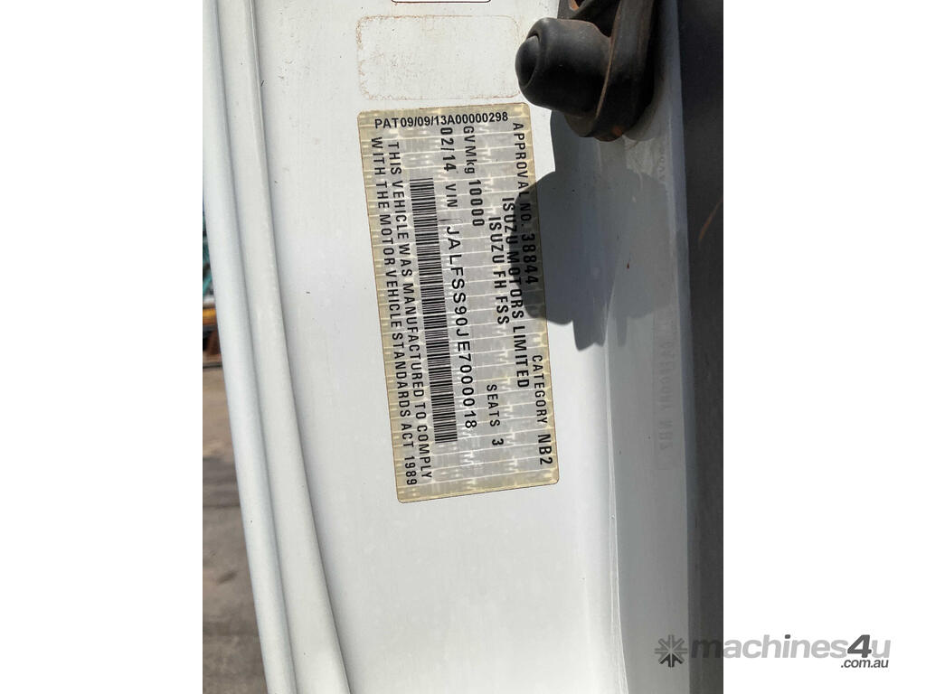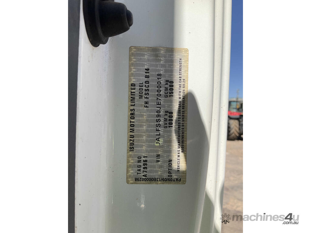 CP: 02/2014,Isuzu,FSS550,Service Truck,Manual,Leaf Springs Suspension ,4 Cyl,Diesel Turbo,6 Gears,112003 (Kms. Showing on Odometer),4050 (Hrs. Showing on Hour meter),Colour: White,Rego. No: 1ENH963 WA,Rego expiry: 31/12/2025,VIN: JALFSS90JE7000018,Key No: 421,GVM: 10000,GCM: 15000,Plates to All,Key No: 421