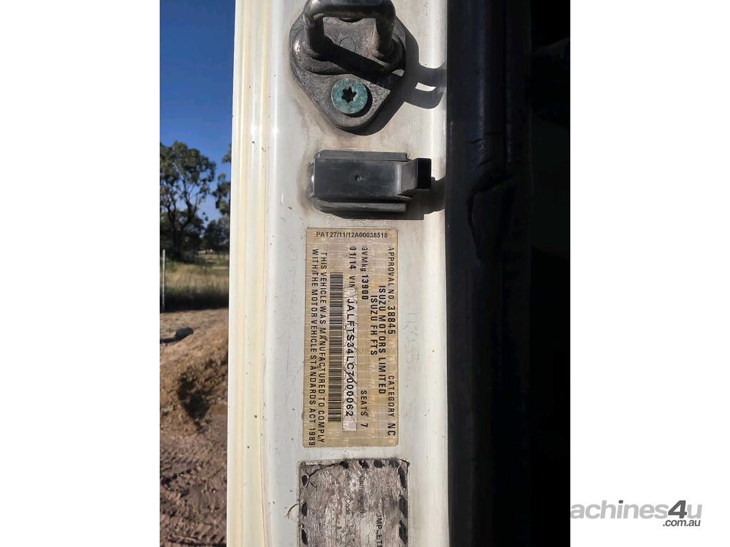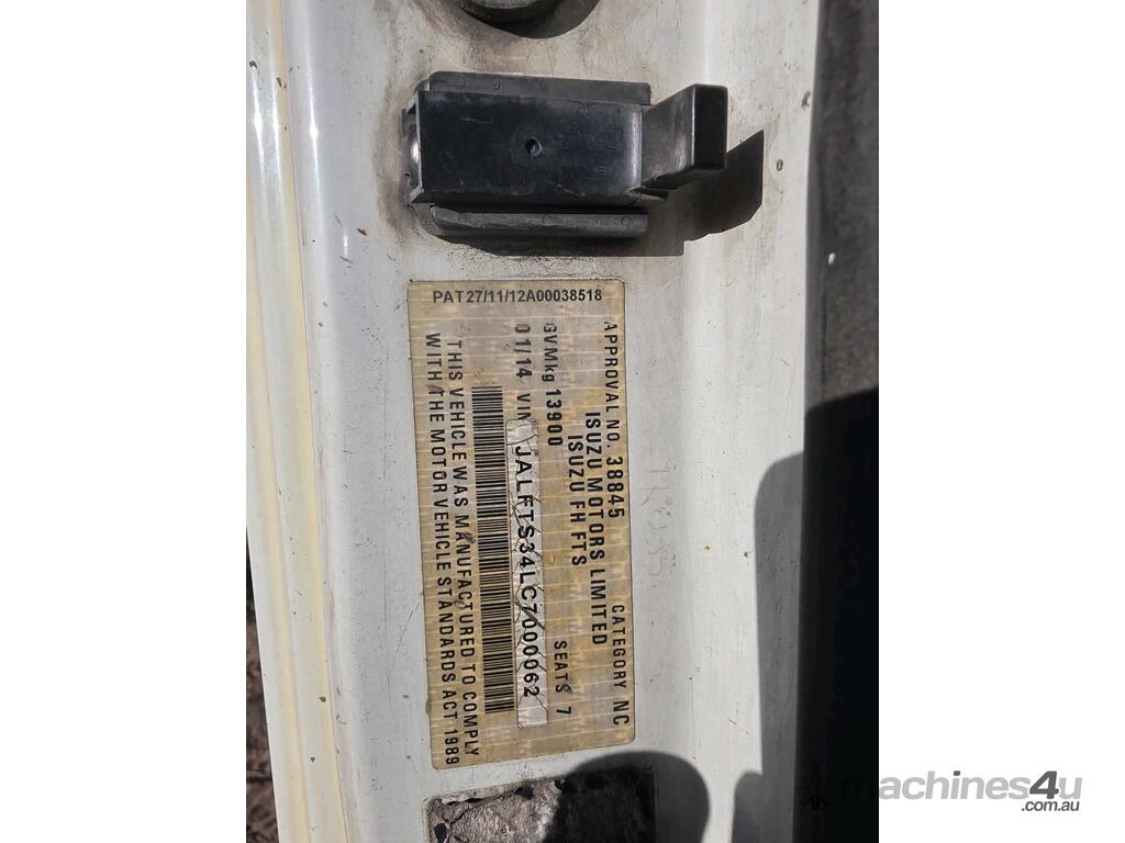 CP: 01/2014,Isuzu,FTS 800,Crew Cab Service Body,Automatic,Diesel,4 Gears,Odometer not visible,Hourmeter not visible,Unregistered,VIN: JALFTS34LC7000062,GVM: 13900,GCM: 15000,Sold with No Plates