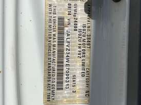 CP: 09/2014,Isuzu,FVZ 1400,Table Top,Manual,Spring Suspension,6 Cyl,Diesel,9 Gears,107364 (Kms. Showing on Odometer),7760 (Hrs. Showing on Hour meter),Colour: White,Rego. No: NP(XQ12TW), Unregistered NAT,VIN: JALFVZ34WE7000313,GVM: 24000,GCM: 36000,Sold with No Plates