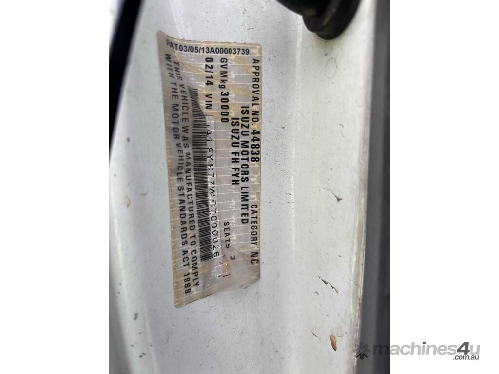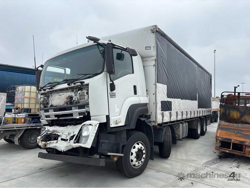CP: 02/2014,Isuzu,FYJ 2000 Long,Curtain Sider,Manual,Diesel,Odometer not visible,Hourmeter not visible,Colour: White,Rego. No: NP(1BW3GU), Unregistered VIC,VIN: JALFYH77WD7000026,Length: 37 ft,GVM: 30000,GCM: 42500,Sold with No Plates,WOVR Status: WOVR N/A,Incident Type: Impact