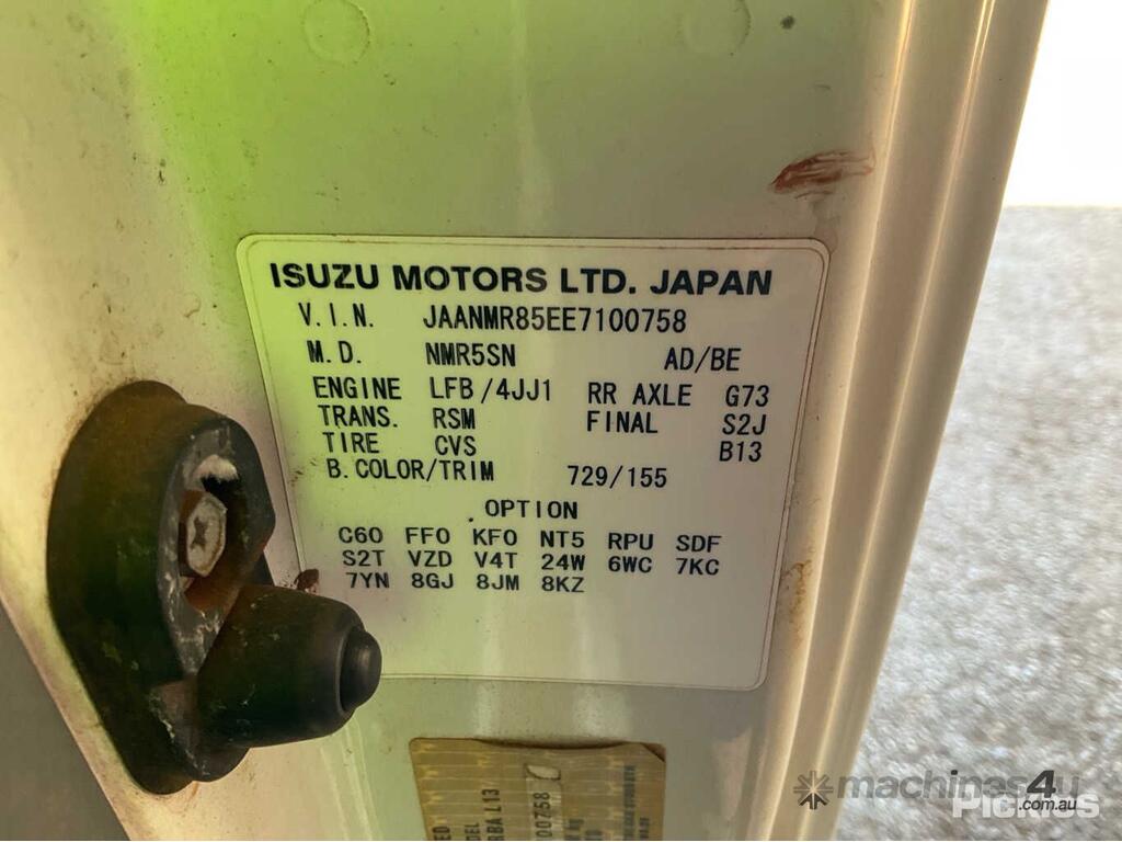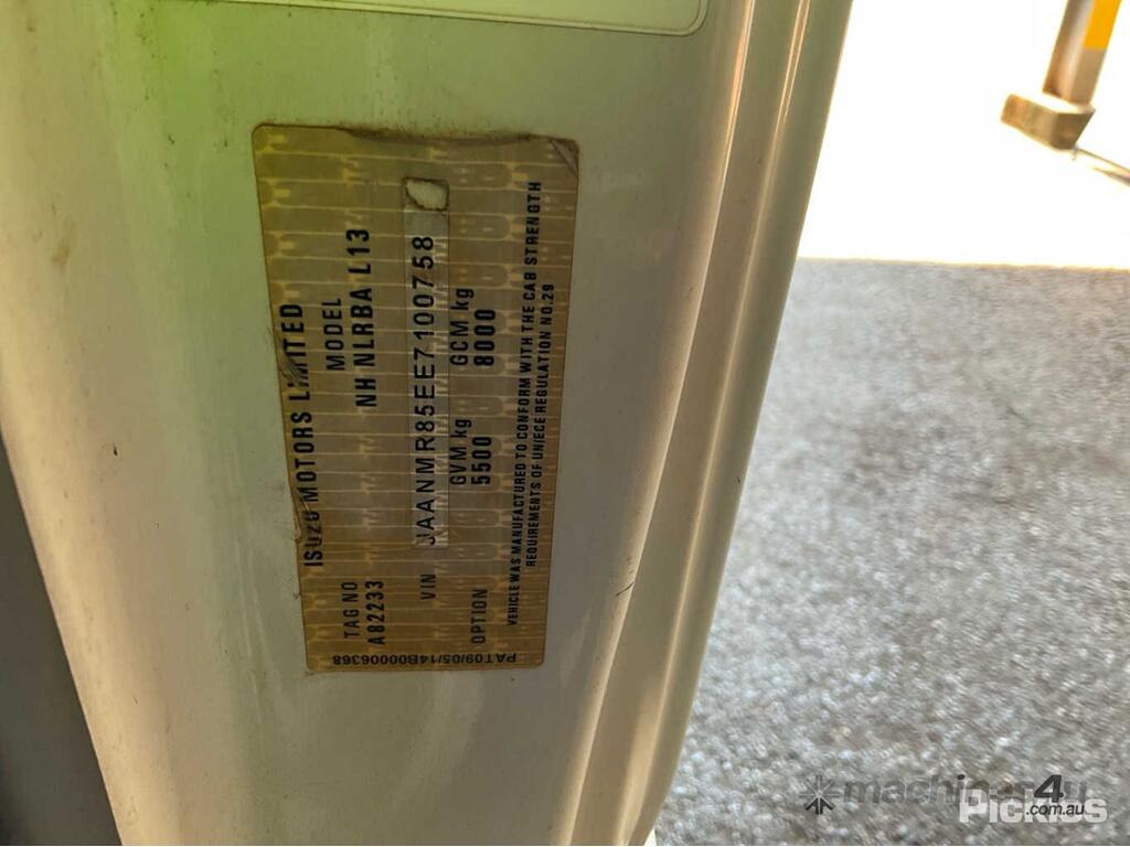 CP: 08/2014,Built: 07/2014,Isuzu,NLR275 Short,Tipper,Manual,Leaf Springs ,Engine #: 1H0197,SiTec,3000 CC,4 Cyl,Diesel,5 Gears,36237 (Kms. Showing on Odometer),Hourmeter not visible,Colour: White,Rego. No: CD61GV NT,VIN: JAANMR85EE7100758,Length: 5 m,GVM: 5500,GCM: 8000,Sold with No Plates