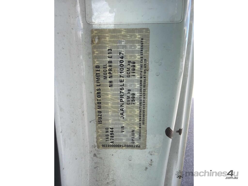 CP: 05/2014,Isuzu,NPR400,Pantech (Crew Cab),Automatic,Spring,Sitec,4 Cyl,Diesel Turbo,69327 (Kms. Showing on Odometer),7467 (Hrs. Showing on Hour meter),Colour: White,Rego. No: CA66GT NSW,Rego expiry: 19/05/2026,VIN: JAANPR75LE7100047,Key No: 147,Length: 6.4 m,GVM: 7500,GCM: 11000,Plates to All,Key No: 147