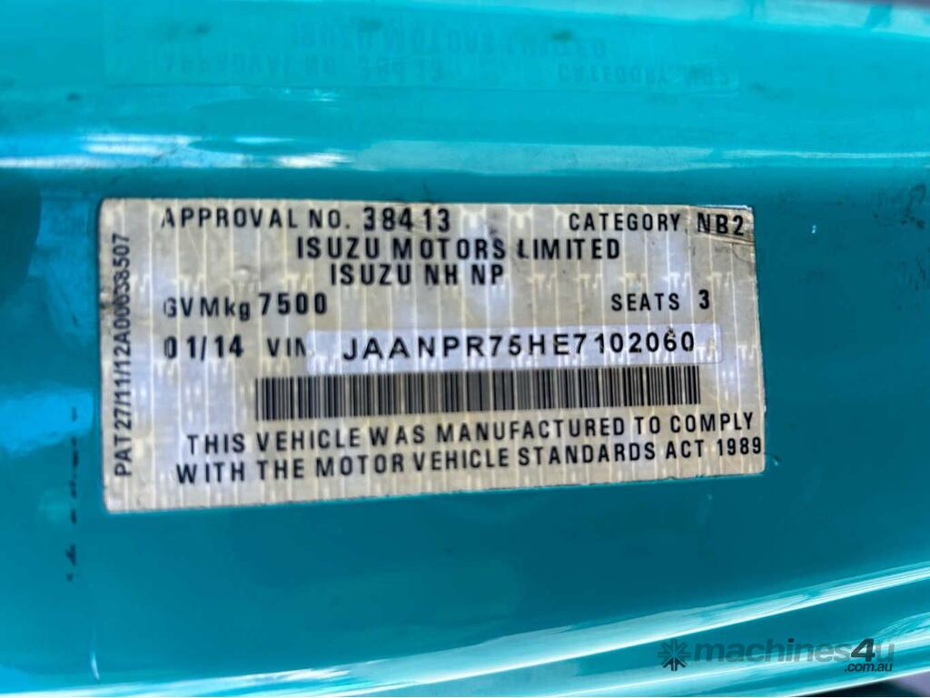 CP: 01/2014,Isuzu,NPR400,Table Top,Automatic,Spring,4 Cyl,Diesel,429220 (Kms. Showing on Odometer),16115 (Hrs. Showing on Hour meter),Colour: Green,Unregistered,VIN: JAANPR75HE7102060,Length: 6300 undefined,GVM: 7500,GCM: 11000,Sold with No Plates