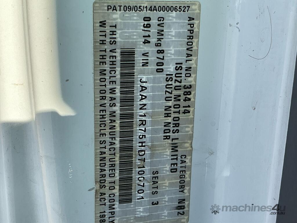 CP: 09/2014,Isuzu,NQR,Refrigerated Pantech,Manual,Leaf Spring Suspension ,4 Cyl,Diesel Turbo,6 Gears,371125 (Kms. Showing on Odometer),Hourmeter not visible,Colour: White,Rego. No: A71304 WA,Rego expiry: 31/12/2025,VIN: JAAN1R75HD7100701,Key No: 104,GVM: 8700,GCM: 12200,Plates to All,Key No: 104
