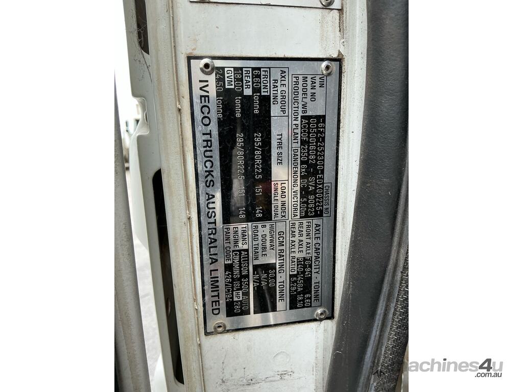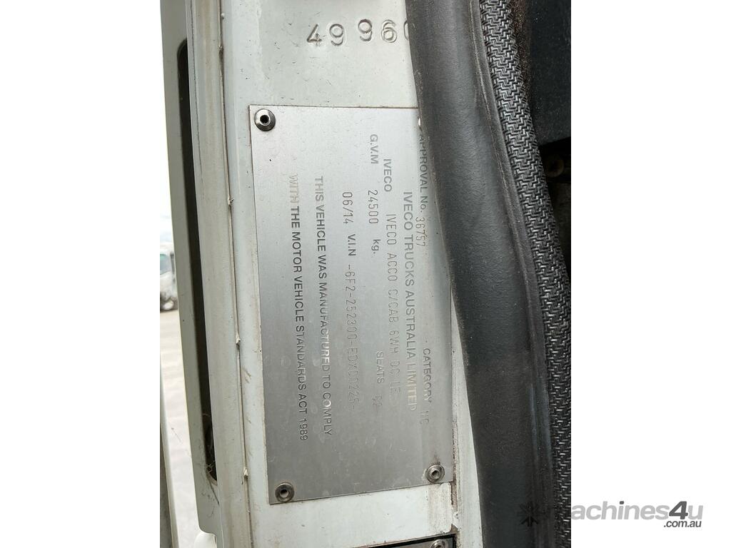 CP: 06/2014,Iveco,ACCO,Cab Chassis,Automatic,Diesel,347623 (Kms. Showing on Odometer),Hourmeter not visible,Colour: White,Rego. No: NP(1DL1GU), Unregistered VIC,VIN: 6F2252300EDX00225,Length: 25 ft,GVM: 24500,Sold with No Plates,WOVR Status: WOVR N/A,Incident Type: Not Applicable