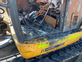 CP: CIRCA 2014,JCB,8045Z,Excavator (Rubber Tracked),Odometer not visible,Hourmeter not visible,Colour: Burnt,Rego. No: NP(50880D), Unregistered NSW,Serial No: XXXXXXXX1390,Sold with No Plates,WOVR Status: WOVR N/A,Incident Type: Fire