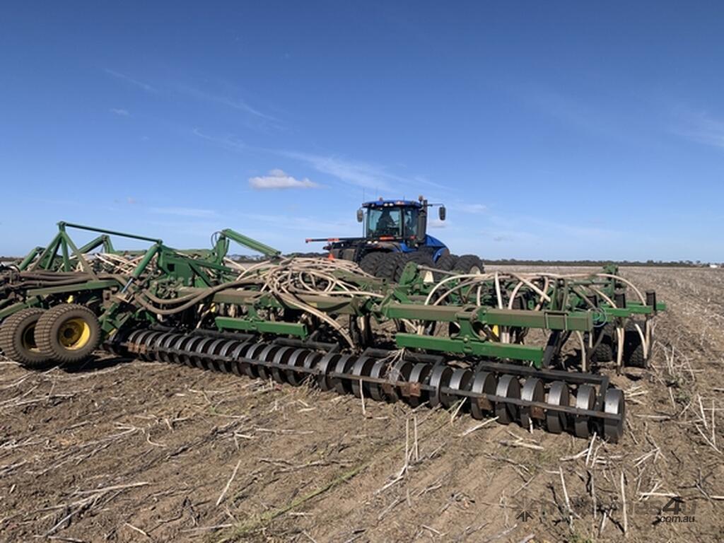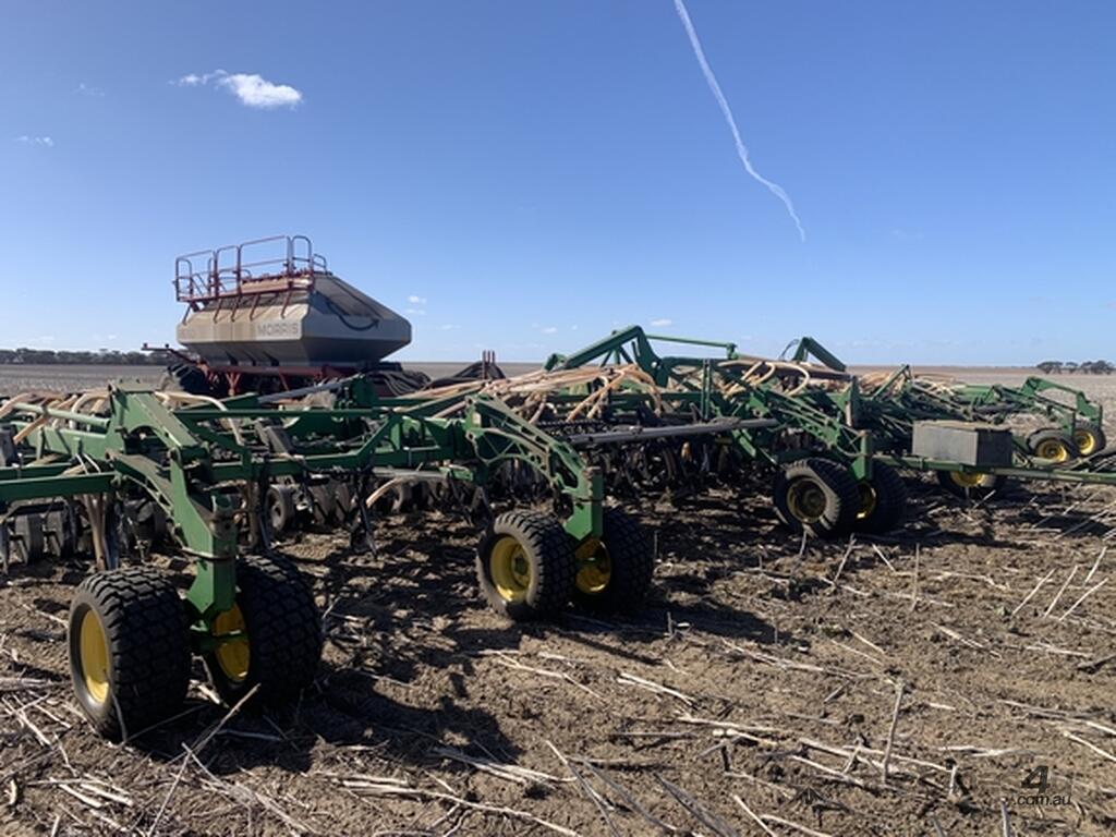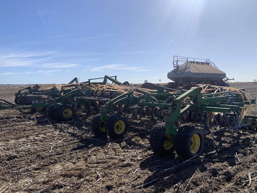 John Deere 1830 61ft 10" spacing, double shoot 550 Lb. opener 4inch capped steel press wheels 31Lx13.5 dual main & wing caster wheels, mechanical depth control