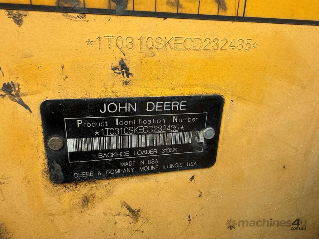 CP: CIRCA 2014,John Deere,310SK,Backhoe,Engine #: PE4045L204471,4 Cyl,Diesel Turbo,Odometer not visible,5530 (Hrs. Showing on Hour meter),Colour: Yellow,Rego. No: NP(35302), Unregistered,Serial No: 1T0310SKECD232435,ROPS No: undefined,FOPS No: undefined,Sold with No Plates
