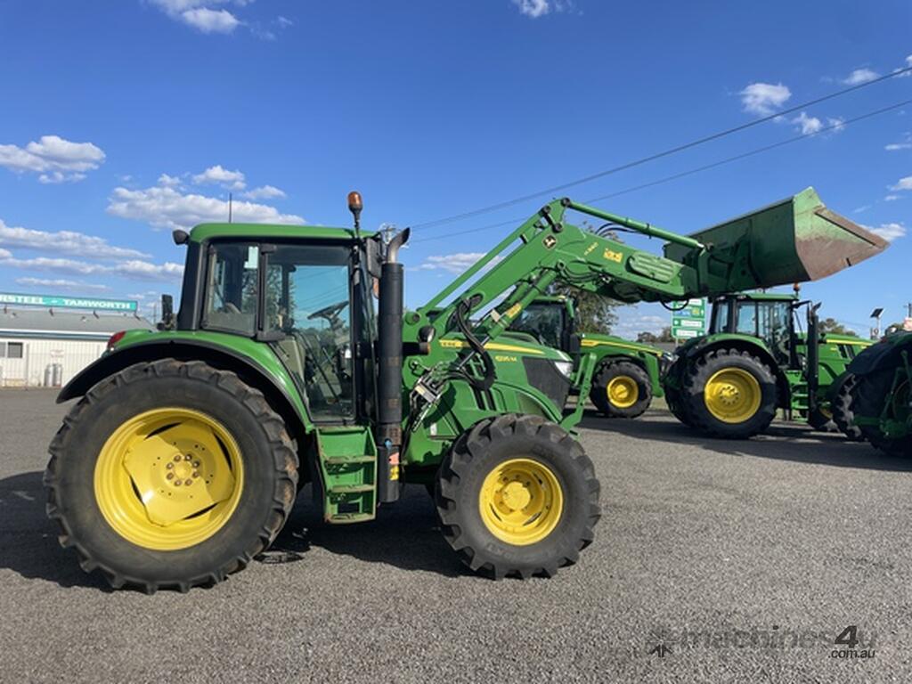 John Deere 6125M, machine 2014 Build with 7086hrs showing, Features MFWD, PowrQuad PLUS 24F/24R Transmission with Left-hand PowrReverser (25 mph/40 km/h, PTO 540/540E/1000 rpm, Standard Cab, Seat with Air Suspension, Air Conditioning, Panorama Windshield with Right-hand (RH) Door, Front tyres 540/65R24 90%, Rear types 600/65R 38 70% , Hydraulics 2 SCV 200 - Series and Deluxe Couplers, Hook End, Category Draft Links with 3N, Rear Remote Power Take-Off (PTO) Control, Rear Hitch Remote Control, Front Weight Support (70 kg/155 lb).Loader H340 John Deere with GP bucket, located in Tamworth NSW. We have a wide range of used machines available with 20 locations throughout New South Wales. we can organise interstate travel and delivery plus competitive finance. with 70 years of experience in the agricultural market, we also have an extensive network of parts, service, and technology support to ensure we keep you running and to provide you with a complete solution. call us now for more information! Call for Finance deals