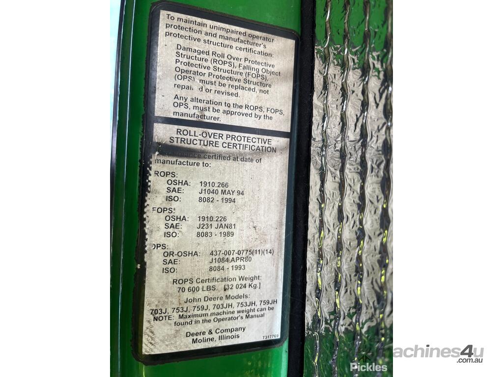 CP: CIRCA 2014,John Deere,753JH,Log Harvester,Odometer not visible,0 (undefined),Unregistered,Serial No: 1EJH215ECE0000039,Sold with No Plates