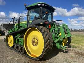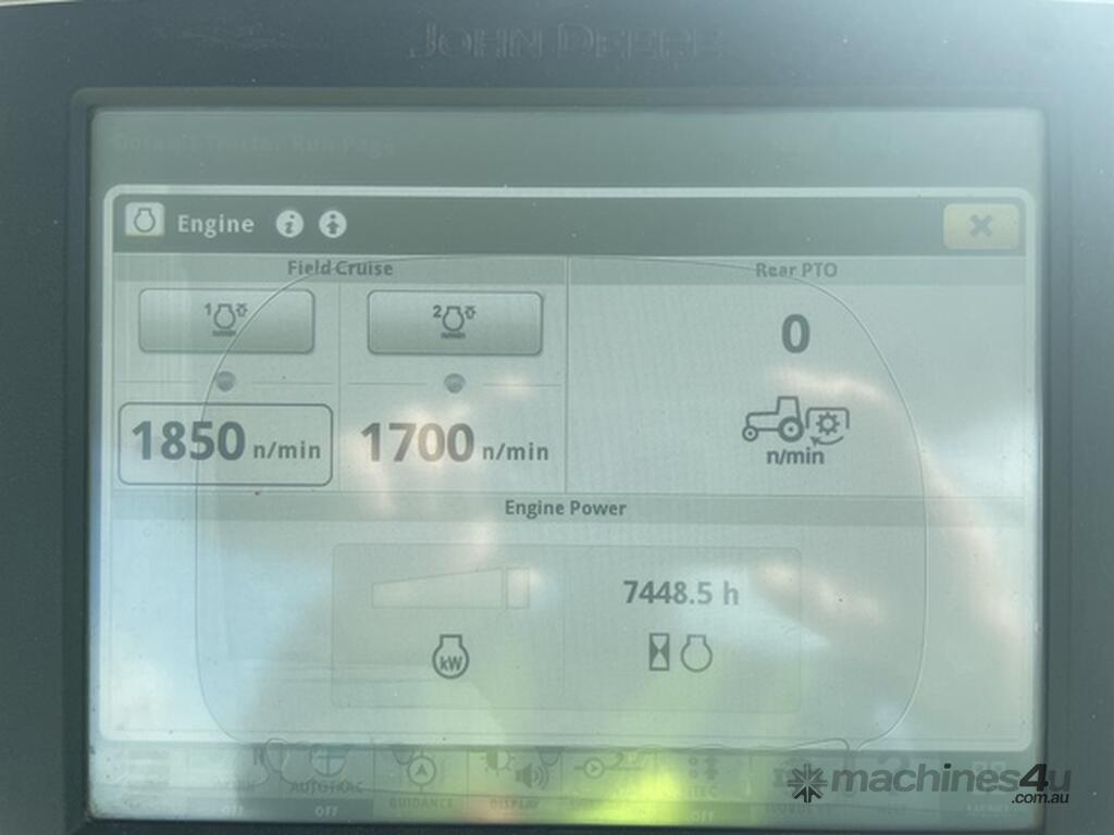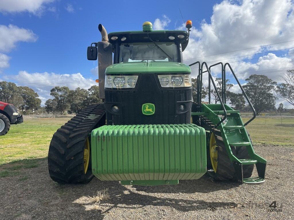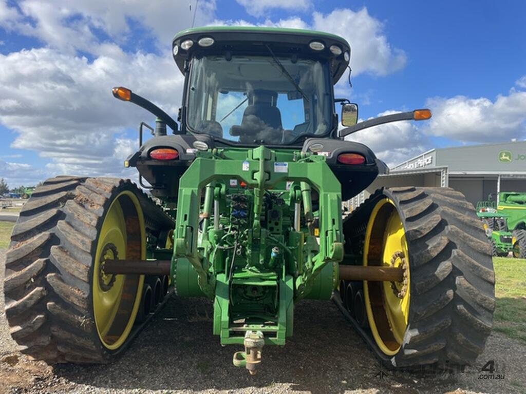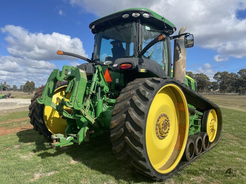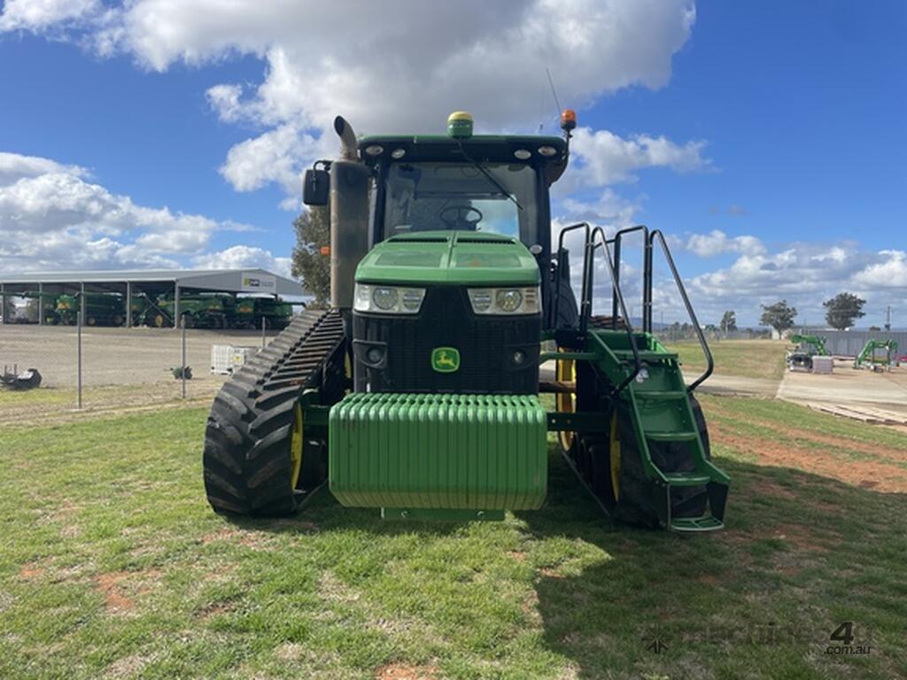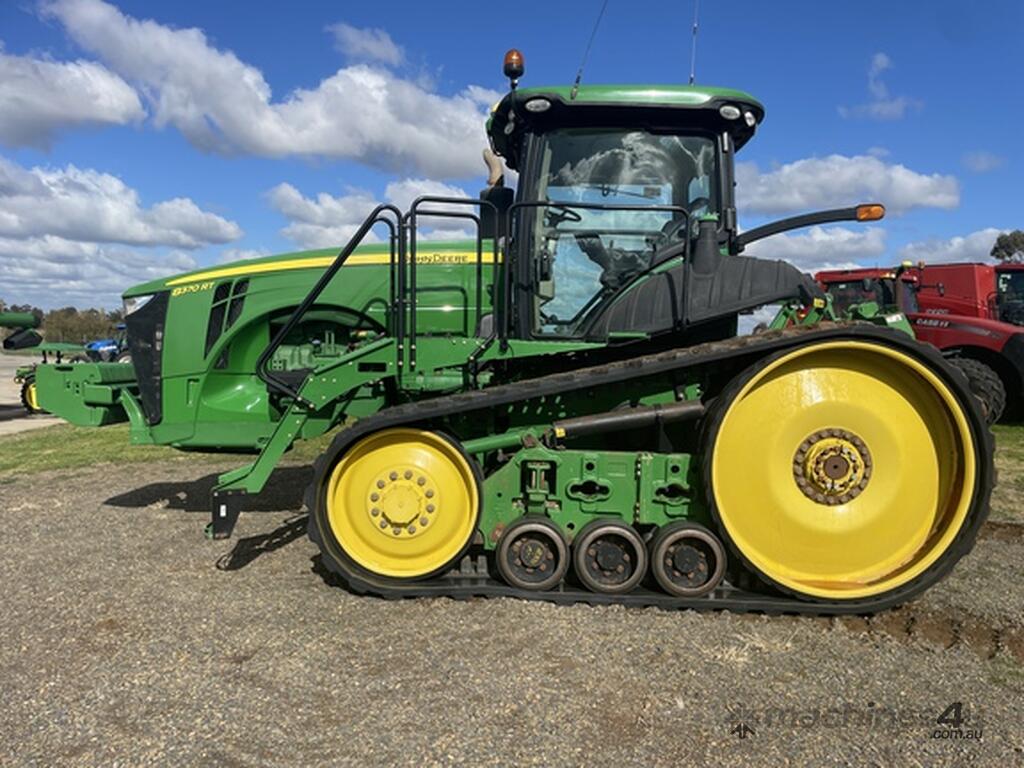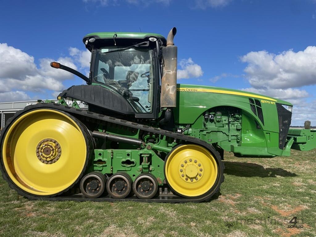 JOHN DEERE 8370RT,TRACK TRACTOR WITH 7448 HRS SHOWING , FEATURES ,TRACK SUSPENSION, IVT 40K TRANSMISSION, 609MM/24-INCH TRACK 80% WITH SOME CROP DAMAGE STILL SERVICEABLE 3MTR SPACING WIDE, STANDARD MID-ROLLERS WIDE DRIVE WHEEL OPTION FRONT IDLER,1000 RPM PTO, PREMIUM COMMAND VIEW 3 CAB ,4600 SCREEN ON ARM REST, AIR SEAT,ENGINE-9LITER STAGE 3,FOUR REMOTES, REAR THREE-POINT LINKAGE (4N/3CAT) 9000KG LIFT (20,000 LB) CAPACITY CATEGORY 4 ADJUSTABLE SWING DRAWBAR, 22FRONT WEIGHTS, FUEL/WATER SEPARATOR SEVERE, UNIT LOCATED IN FORBES NSW WE HAVE A WIDE RANGE OF USED MACHINES AVAILABLE WITH 20 LOCATIONS THROUGHOUT NEW SOUTH WALES. WE CAN ORGANISE INTERSTATE TRAVEL AND DELIVERY PLUS COMPETITIVE FINANCE. WITH 70 YEARS OF EXPERIENCE IN THE AGRICULTURAL MARKET, WE ALSO HAVE AN EXTENSIVE NETWORK OF PARTS, SERVICE, AND TECHNOLOGY SUPPORT TO ENSURE WE KEEP YOU RUNNING AND TO PROVIDE YOU WITH A COMPLETE SOLUTION. CALL US NOW FOR MORE INFORMATION.