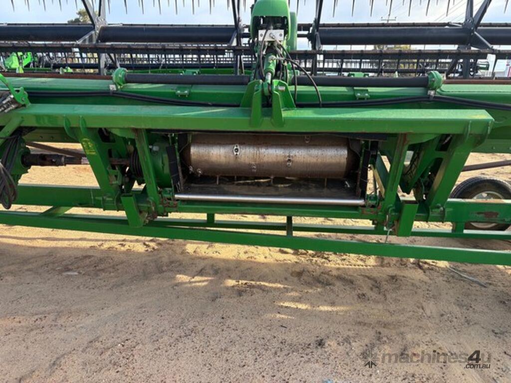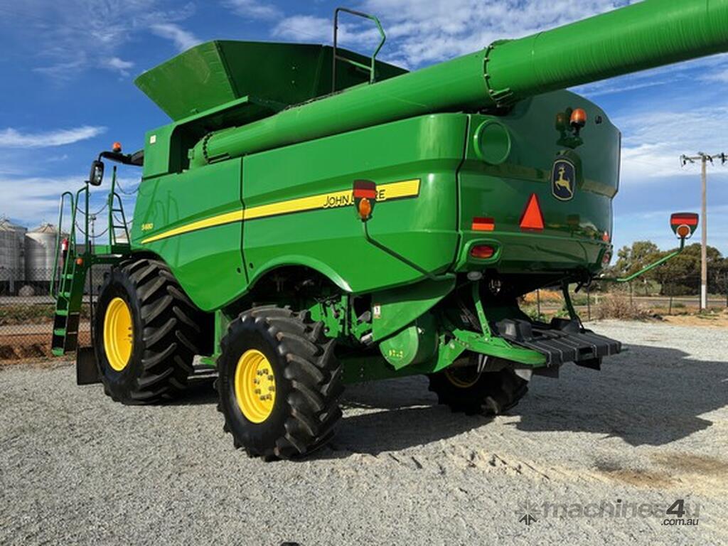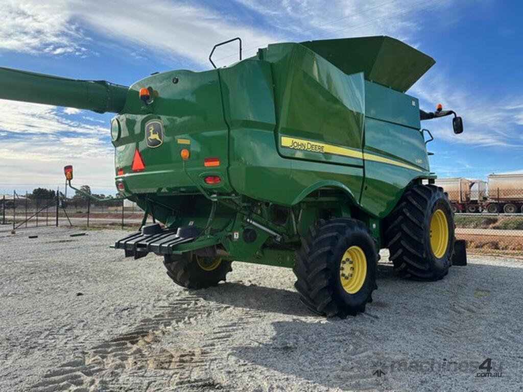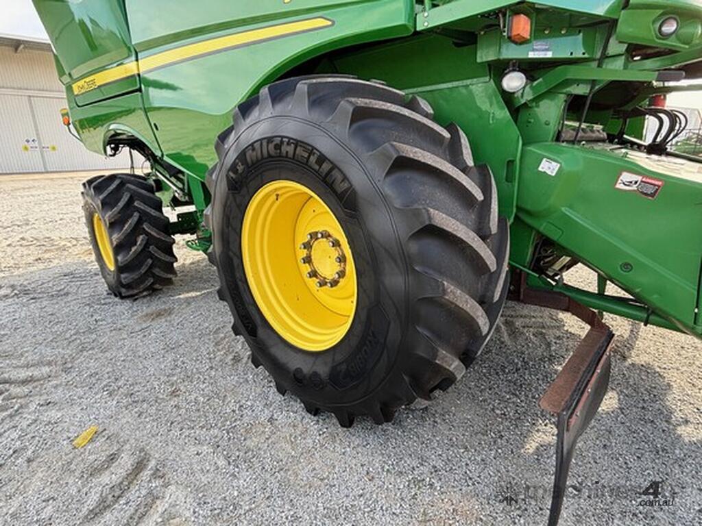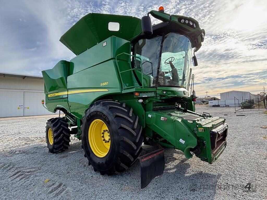 MY14 John Deere S680 Harvester. OEM Chopper fitted. 800/70R38 Front tyres on 3mt centers. Moderate hours. 12mt CTF unload Auger paired with John Deere 640D platform. Good reliable unit for hours. As is condition, with repair estimates available. For more information, please call AFGRI Wongan Hills on