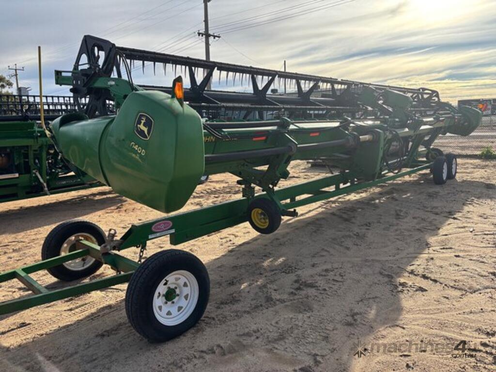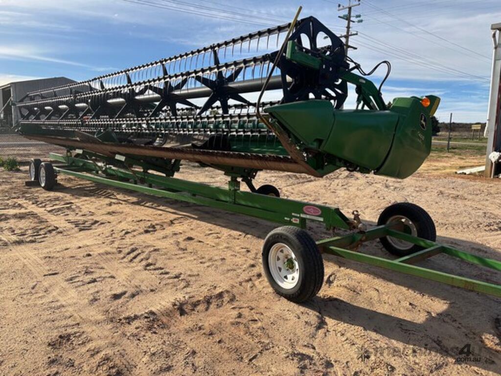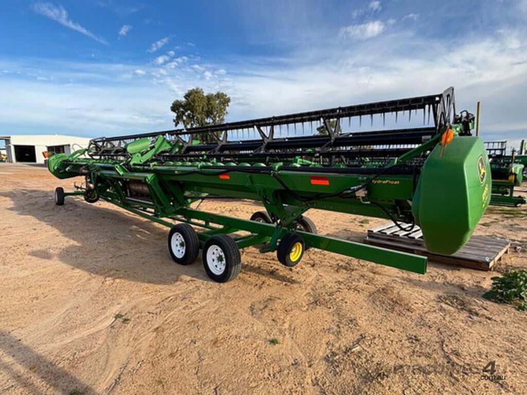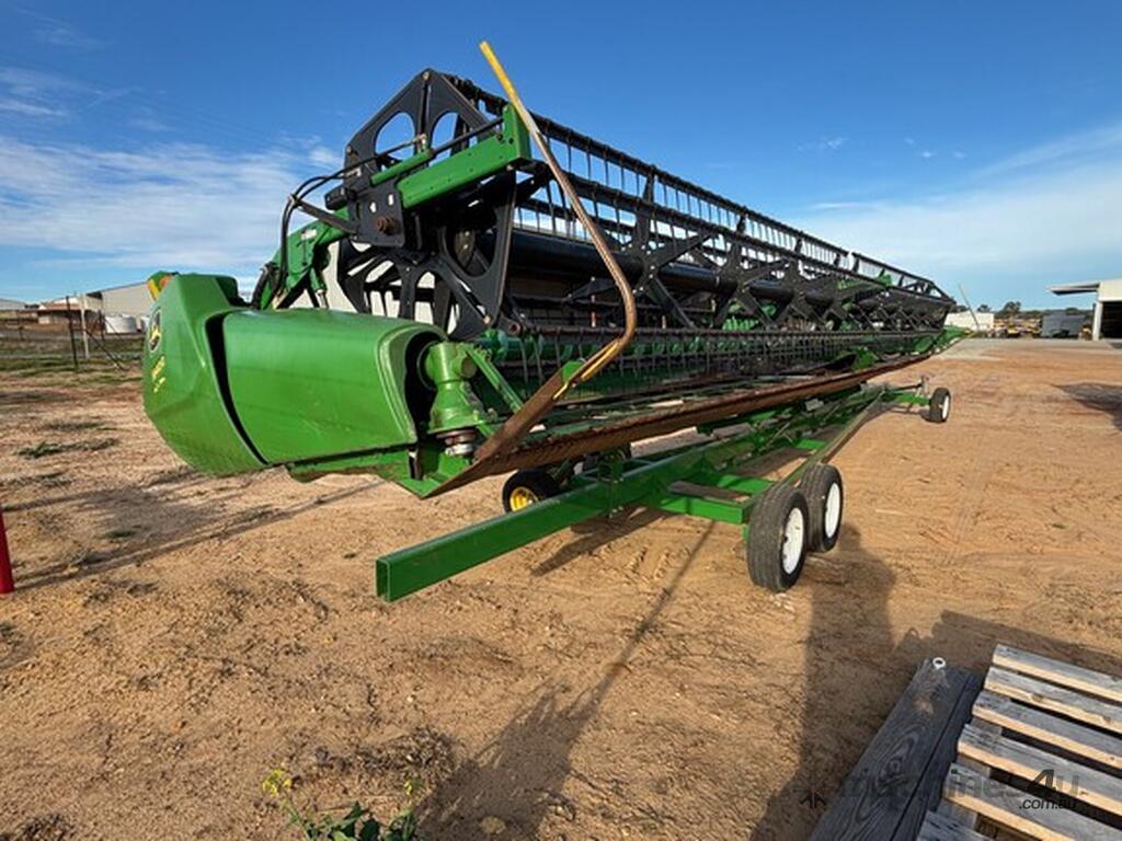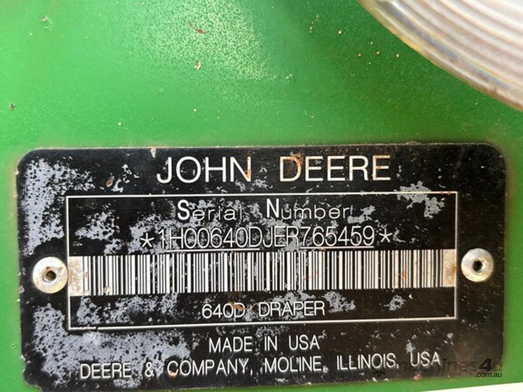 MY14 John Deere S680 Harvester. OEM Chopper fitted. 800/70R38 Front tyres on 3mt centers. Moderate hours. 12mt CTF unload Auger paired with John Deere 640D platform. Good reliable unit for hours. As is condition, with repair estimates available. For more information, please call AFGRI Wongan Hills on