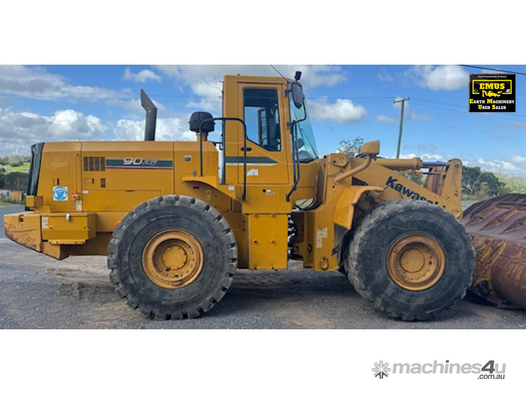 The 2014 Kawasaki 90ZV-2 is a large, powerful heavy-duty wheel loader, featuring a 275hp Cummins engine, substantial operating weight (around 23 tonnes/50,000 lbs), Z-linkage for strong breakout force, and typically used with large buckets (5-5.9 cubic yards) for demanding tasks like mining and quarry work, with available "Power" and "Fuel Efficient" engine modes. These machines are known for their robust build and efficiency, offering features like electronic monitoring and fuel-saving options for various applications.