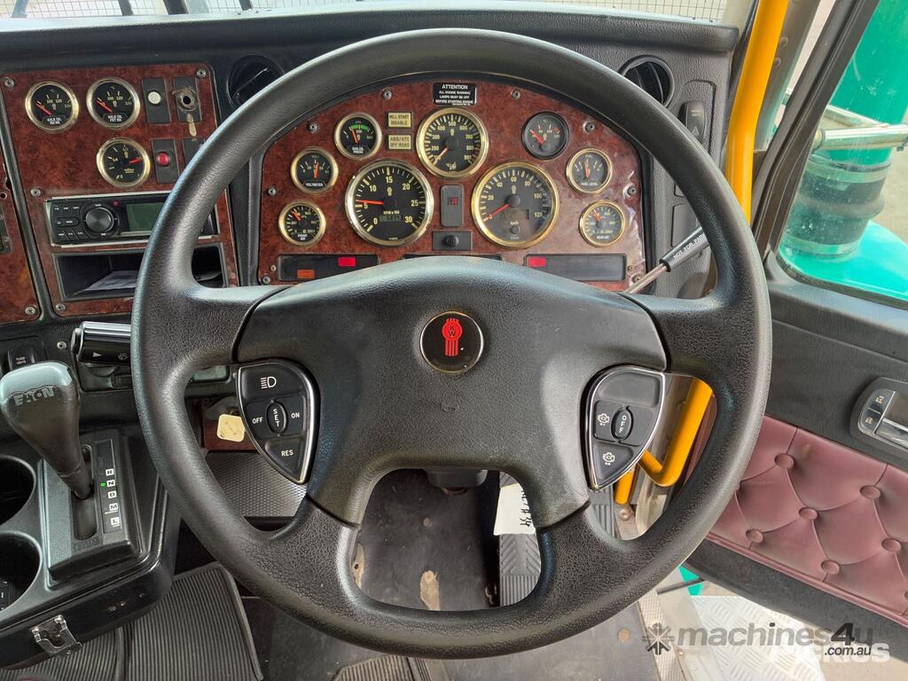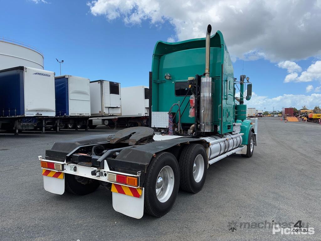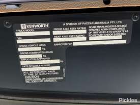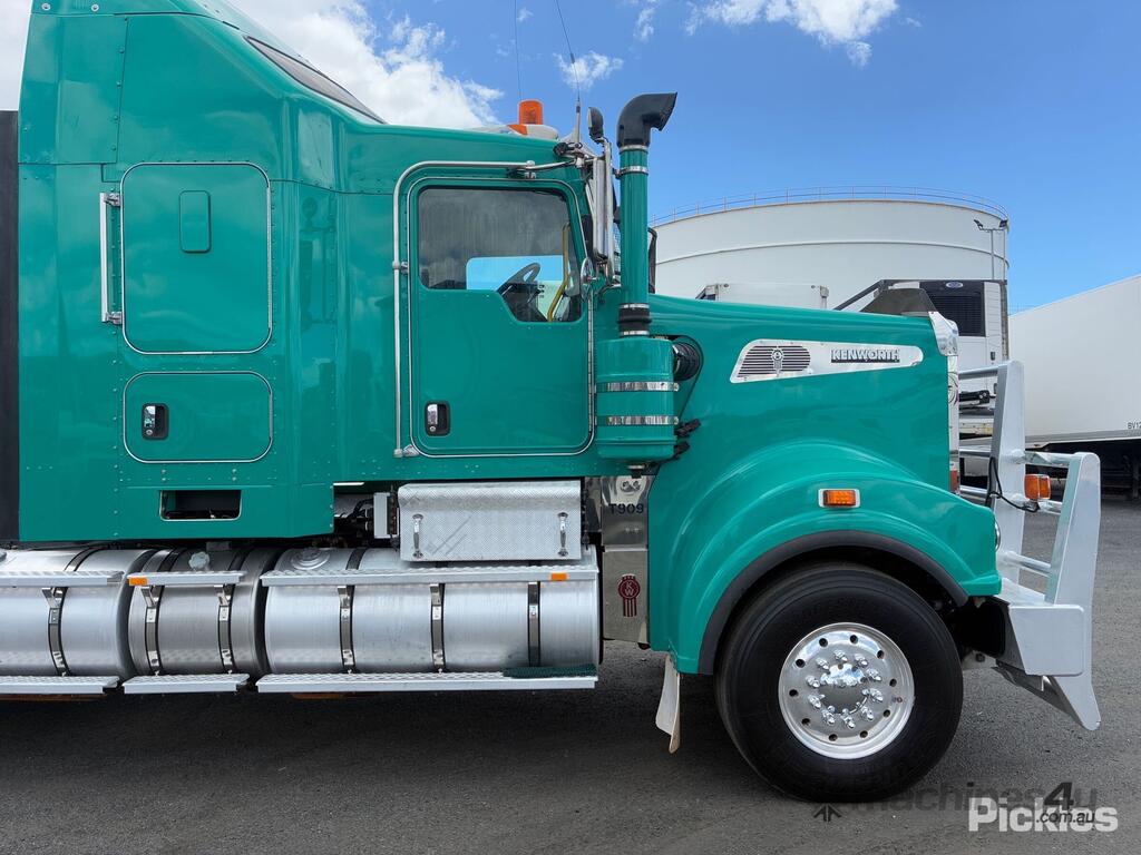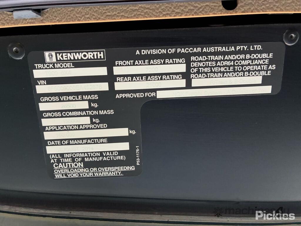 CP: 08/2014,Kenworth,T909,Prime Mover Sleeper Cab,Automatic,Spring,Cummins ISX15E5,6 Cyl,Diesel,47532 (Kms. Showing on Odometer),6834 (Hrs. Showing on Hour meter),Colour: Green,Rego. No: XB77CM QLD,VIN: 6F5000000EA452876,Key No: 34,GVM: 26500,GCM: 155000,Sold with No Plates,Key No: 34