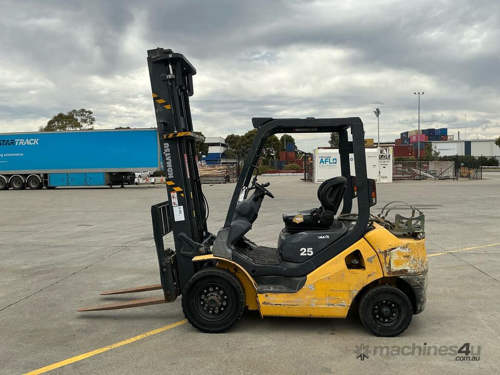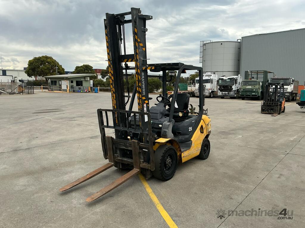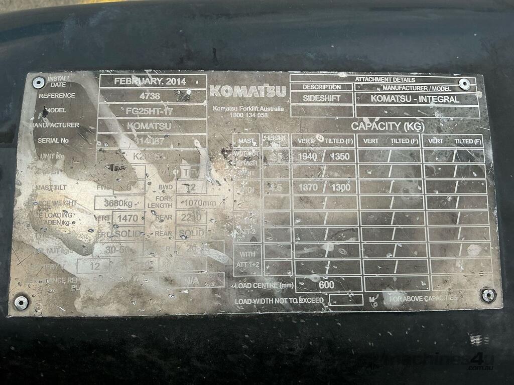CP: CIRCA 2014,Komatsu,FG25 HT-17,Forklift,Engine #: 149467Y,4 Cyl,Diesel/LPG (Dual Fuel),Odometer not visible,14584 (Hrs. Showing on Hour meter),Colour: Yellow,Unregistered,Serial No: 314087,Sold with No Plates