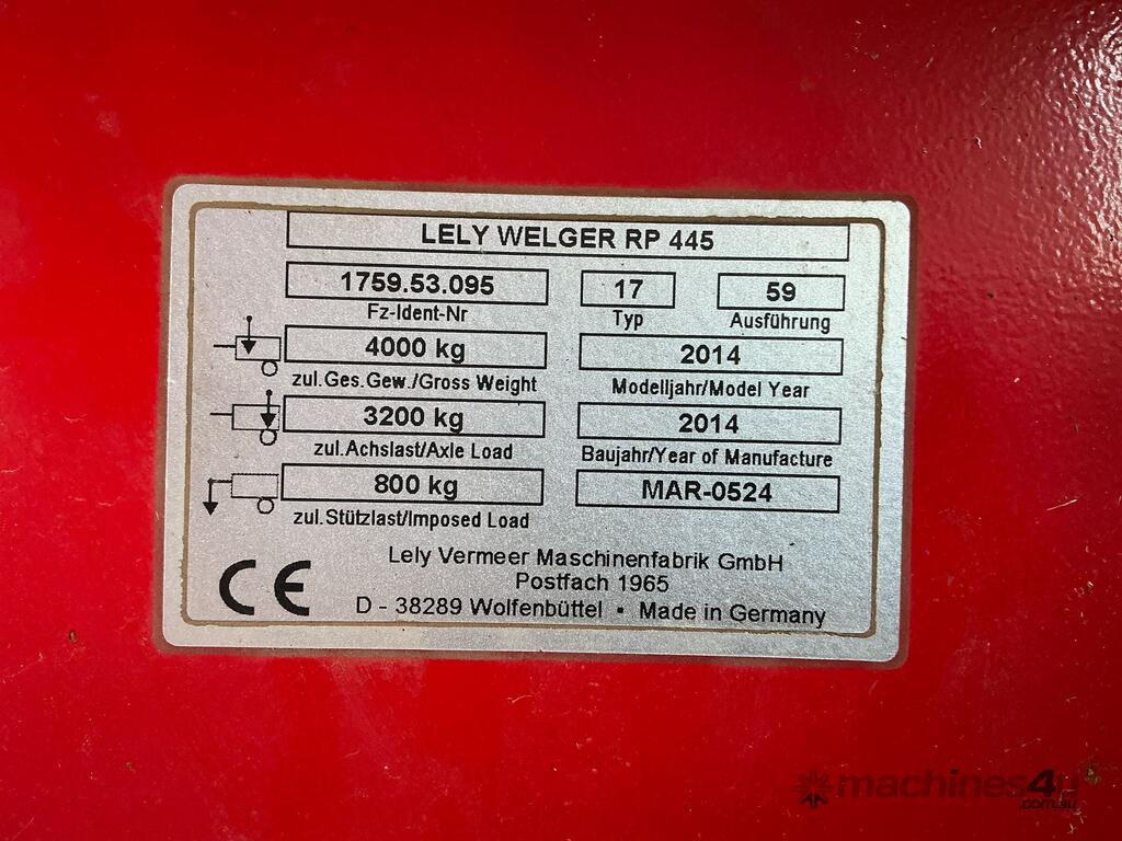CP: CIRCA 2014,Lely Welger,RP 445,Baler,Odometer not visible,Hourmeter not visible,Colour: Red,Unregistered,Serial No: ,Sold with No Plates,WOVR Status: WOVR N/A,Incident Type: Impact