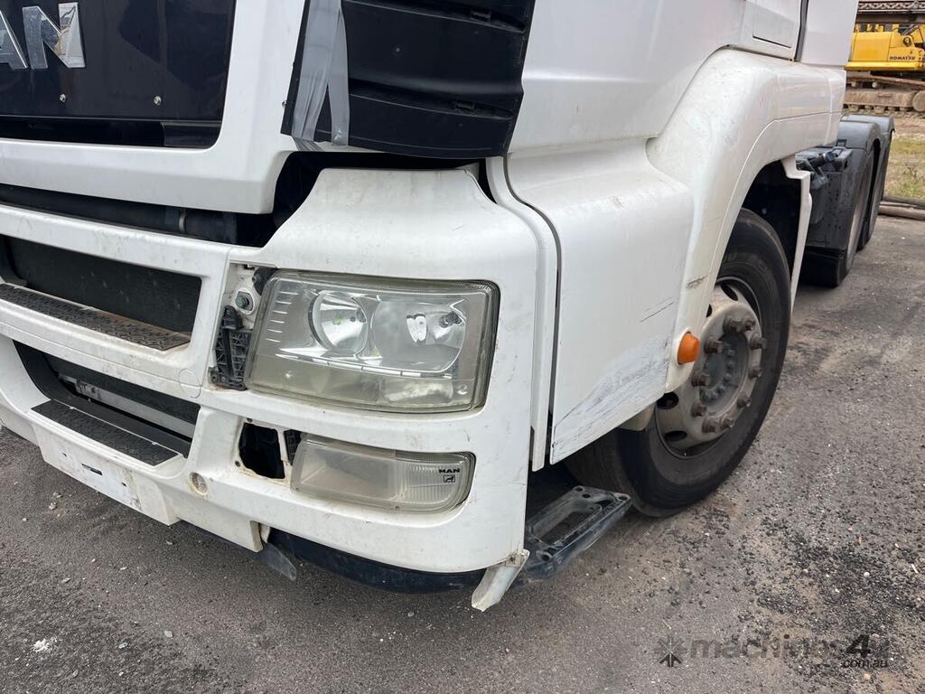 CP: 01/2014,MAN,TGA,6x4,Automatic,Air Bag ,6 Cyl,Diesel Turbo,Odometer not visible,Hourmeter not visible,Colour: White,Rego. No: SB17JM,VIN: WMA30SZZ1EM647374,GVM: 26000,Sold with No Plates,WOVR Status: WOVR N/A,Incident Type: Impact
