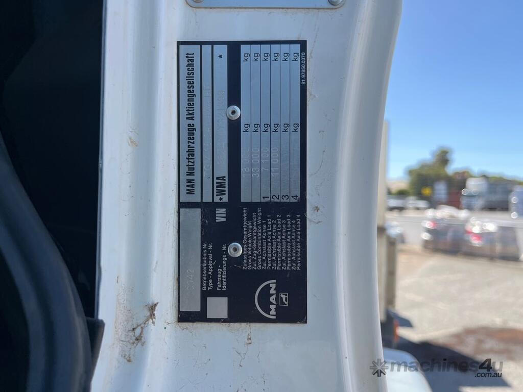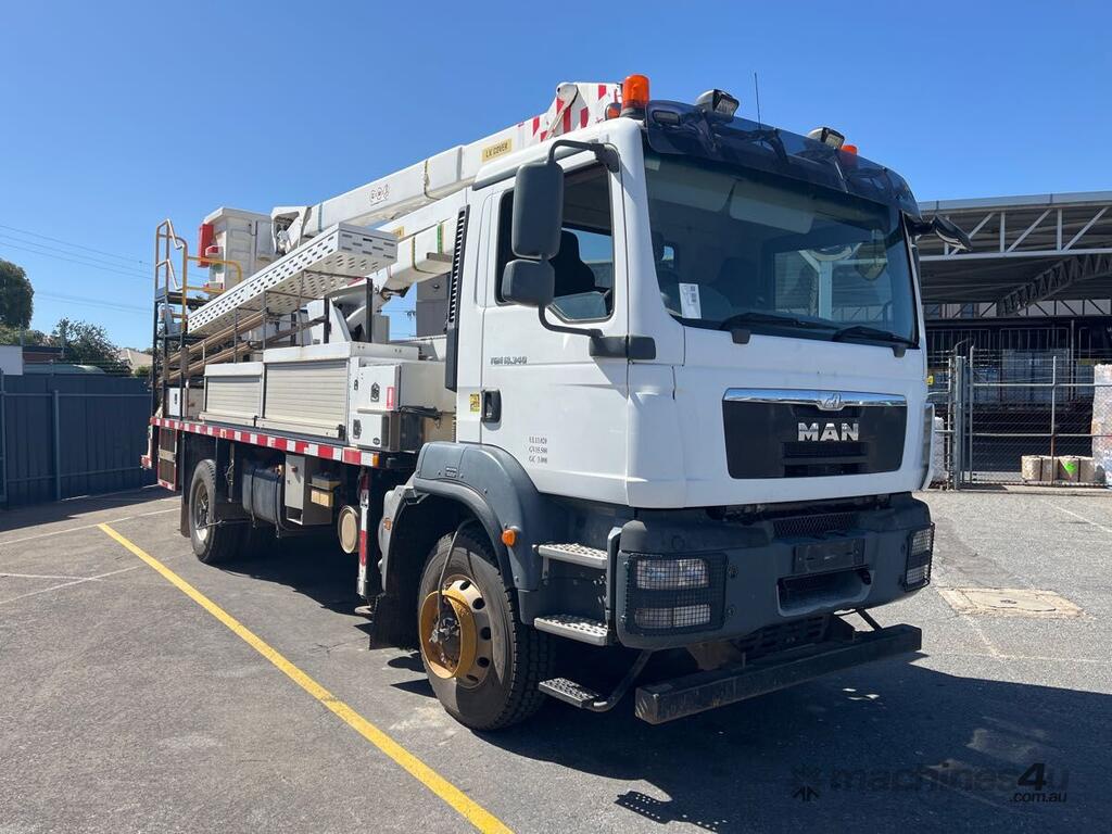 CP: 12/2014,MAN,TGM 18.340,EWP,Automatic,Leaf Spring,6 Cyl,Diesel Turbo,248252 (Kms. Showing on Odometer),9100 (Hrs. Showing on Hour meter),Colour: White,Rego. No: SB29KJ SA,VIN: WMAN38ZZ1FY321393,Key No: P176,Length: 9.3 m,GVM: 18000,GCM: 33000,Sold with No Plates,Key No: P176