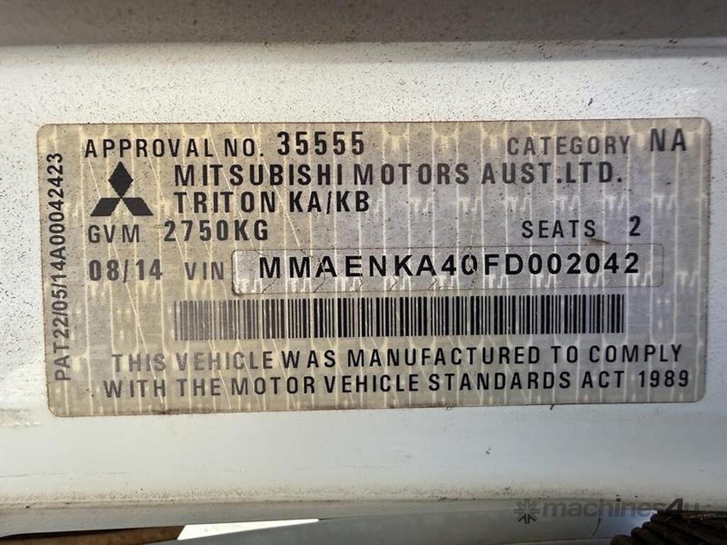 2014 MITSUBISHI TRITON GL UTE, VIN: MMAENKA40FD002042, E/N: ####, 182,050KM SHOWING. NO REGISTRATION, NO RWC. LOCATION: NEAR BUNDABERG, QLD 4670. INSPECTIONS & COLLECTIONS: BY APPOINTMENT ONLY. ENQUIRIES: JOHN MCDOUGALL ON OR JOHNEMERALDAUCTIONCENTRE