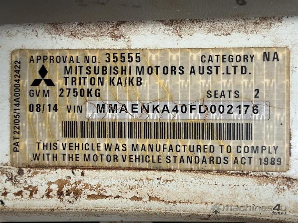 2014 MITSUBISHI TRITON UTE, VIN: MMAENKA40FD002176, E/N: ##Y0903, 280,115KM SHOWING, NO REGISTRATION, NO RWC. LOCATION: NEAR BUNDABERG, QLD 4670. INSPECTIONS & COLLECTIONS: BY APPOINTMENT ONLY. ENQUIRIES: JOHN MCDOUGALL ON OR JOHNEMERALDAUCTIONCENTRE
