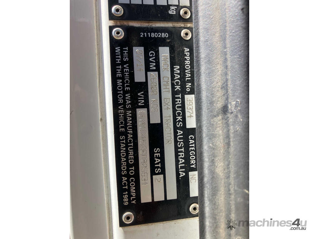 CP: 07/2014,Mack,CMHT Trident,Prime Mover Day Cab,Automatic,Airbag,Mack MP8,6 Cyl,Diesel,661795 (Kms. Showing on Odometer),14750 (Hrs. Showing on Hour meter),Colour: White,Rego. No: NP(XP71HH), Unregistered NAT,VIN: 6FMM12H69ED805634,GVM: 26000,GCM: 70000,Sold with No Plates