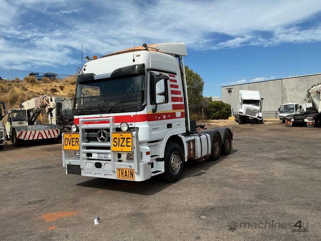 CP: 01/2014,Mercedes Benz,Actros 2660,Prime Mover Sleeper Cab,Automatic,Air Bag Suspension ,6 Cyl,Diesel,Odometer not visible,12372 (Hrs. Showing on Hour meter),Colour: White,Rego. No: 1ELV822 WA,VIN: WDB9342412L782749,GVM: 26000,GCM: 90000,Sold with No Plates