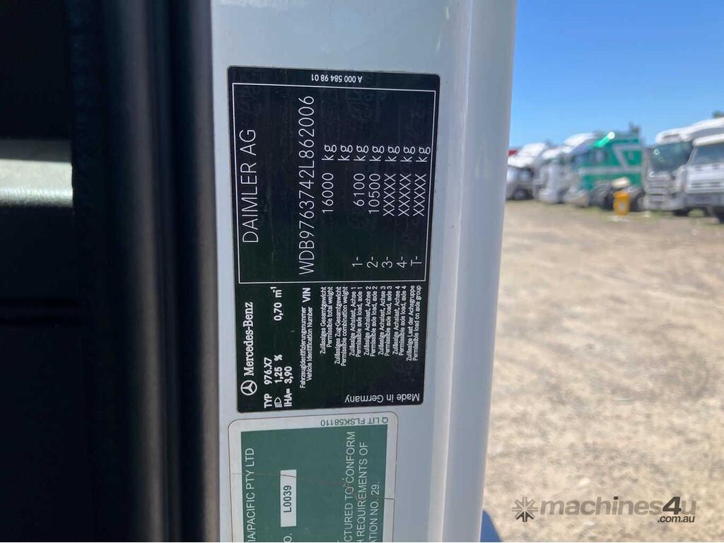 CP: 07/2014,Mercedes Benz,Atego 1629,Cab Chassis,Manual,Spring,6 Cyl,Diesel,Odometer not visible,Hourmeter not visible,Colour: White,Unregistered,VIN: WDB9763742L862006,GVM: 16000,GCM: 34000,Sold with No Plates,WOVR Status: WOVR N/A,Incident Type: Impact