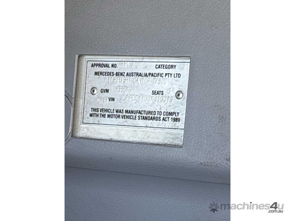 CP: 10/2014,Mitsubishi Fuso,Canter 7/800,Refrigerated Pantech,Automatic,Diesel,Odometer not visible,Hourmeter not visible,Colour: White,Unregistered,VIN: JLFFECX1G0KJ10079,Length: 23 ft,GVM: 8550,GCM: 11700,Sold with No Plates