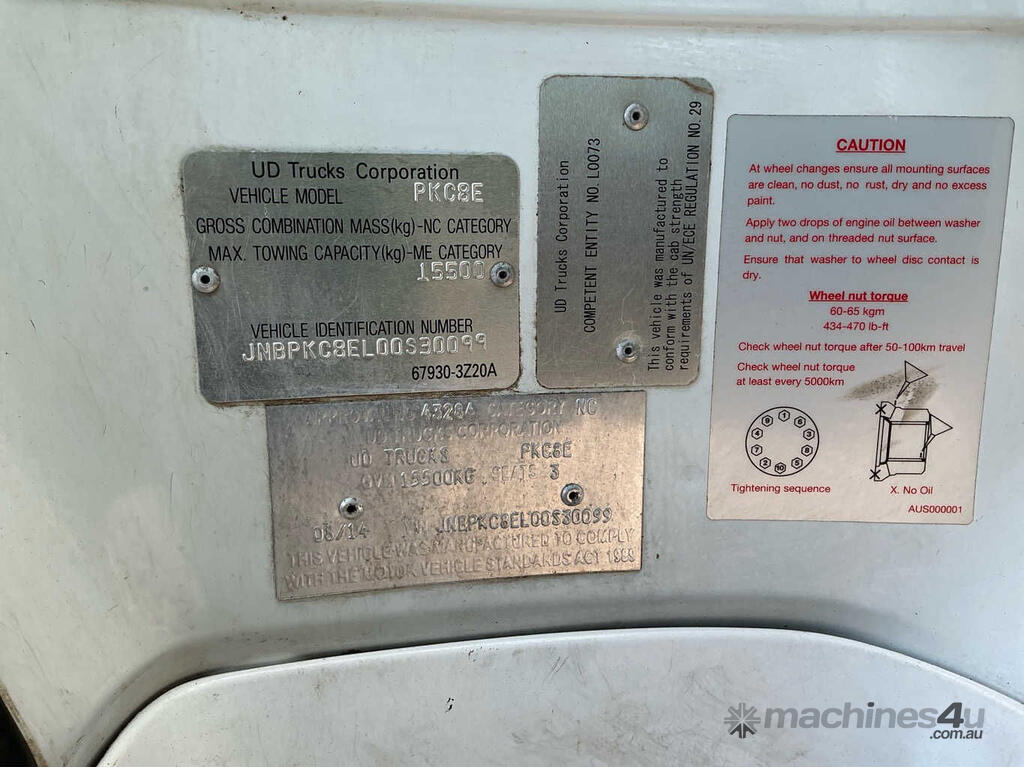 CP: 08/2014,Nissan UD,Condor PK16 250,Refrigerated Pantech,Automatic,Spring,6 Cyl,Diesel,466945 (Kms. Showing on Odometer),7376 (Hrs. Showing on Hour meter),Colour: White,Rego. No: 1HEW603 WA,Rego expiry: 04/08/2026,VIN: JNBPKC8EL00S30099,Key No: 486,Length: 11.3 m,GVM: 15500,Plates to All,Key No: 486
