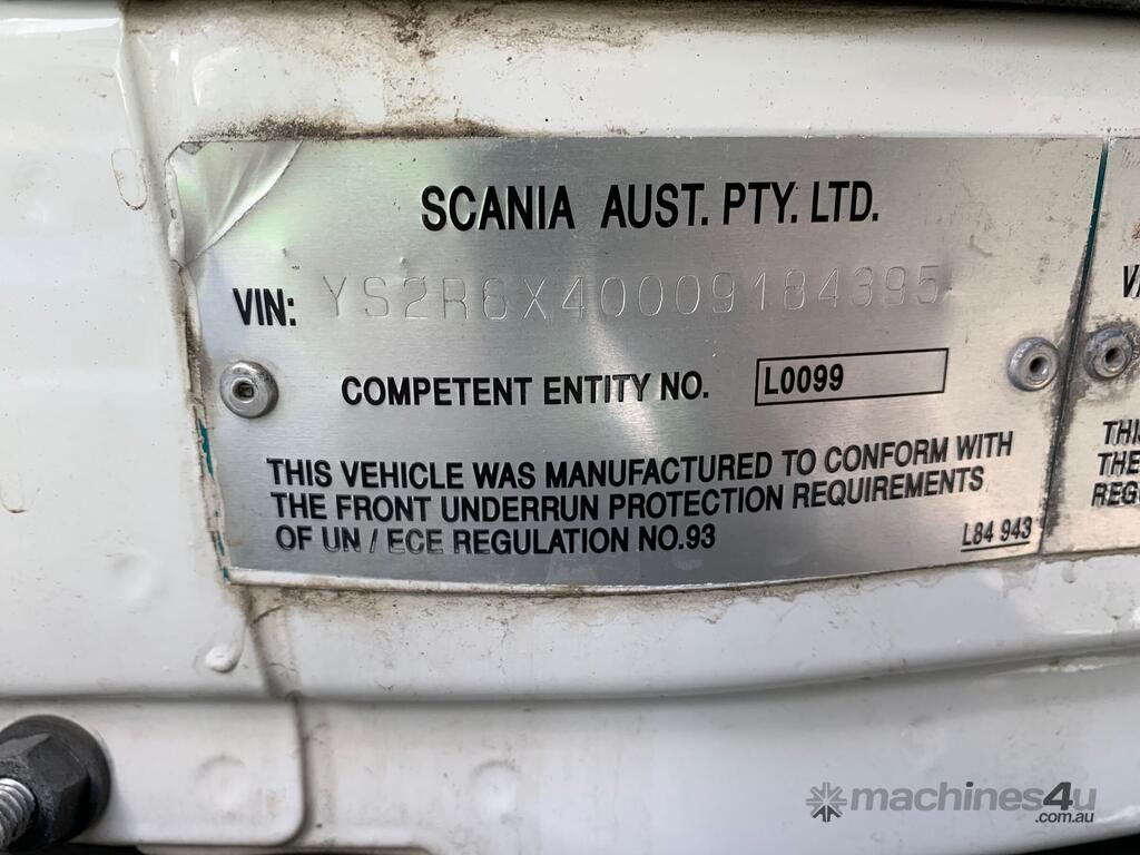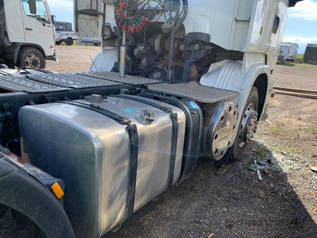 CP: 05/2014,Scania,R560,6x4 Prime Mover,Automatic,airbags,8 Cyl,Diesel,Odometer not visible,Hourmeter not visible,Colour: White,Rego. No: NP(XB35OA), Unregistered QLD,VIN: YS2R6X5,GVM: 33500,GCM: 130000,Sold with No Plates,WOVR Status: WOVR N/A,Incident Type: Impact