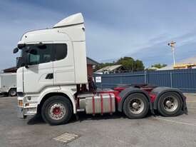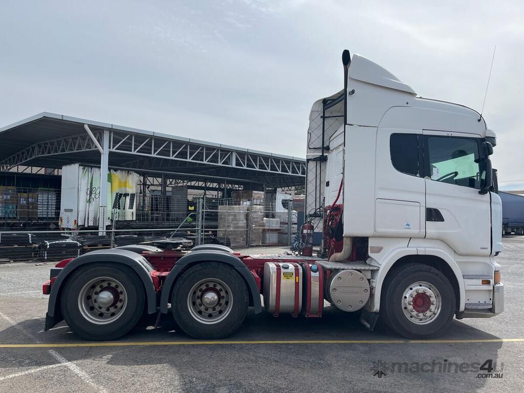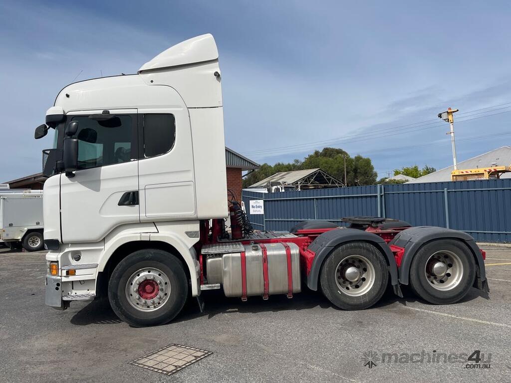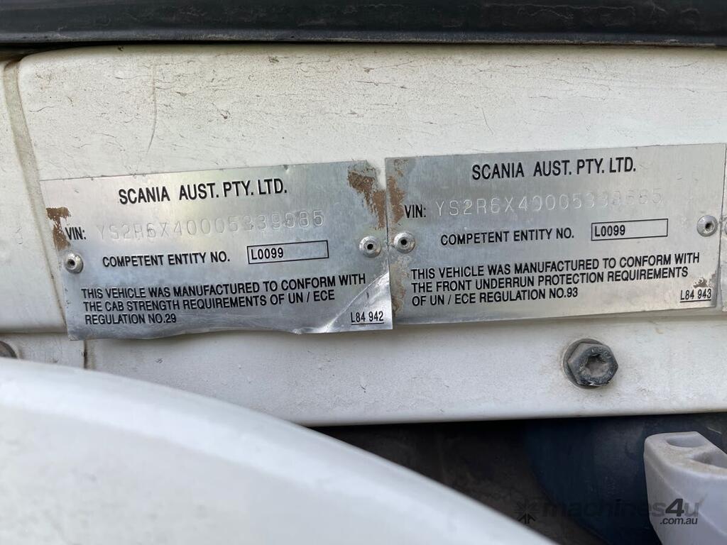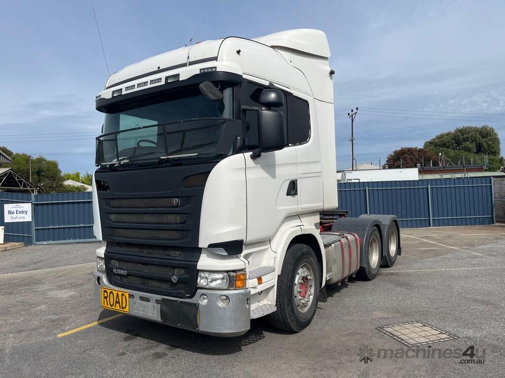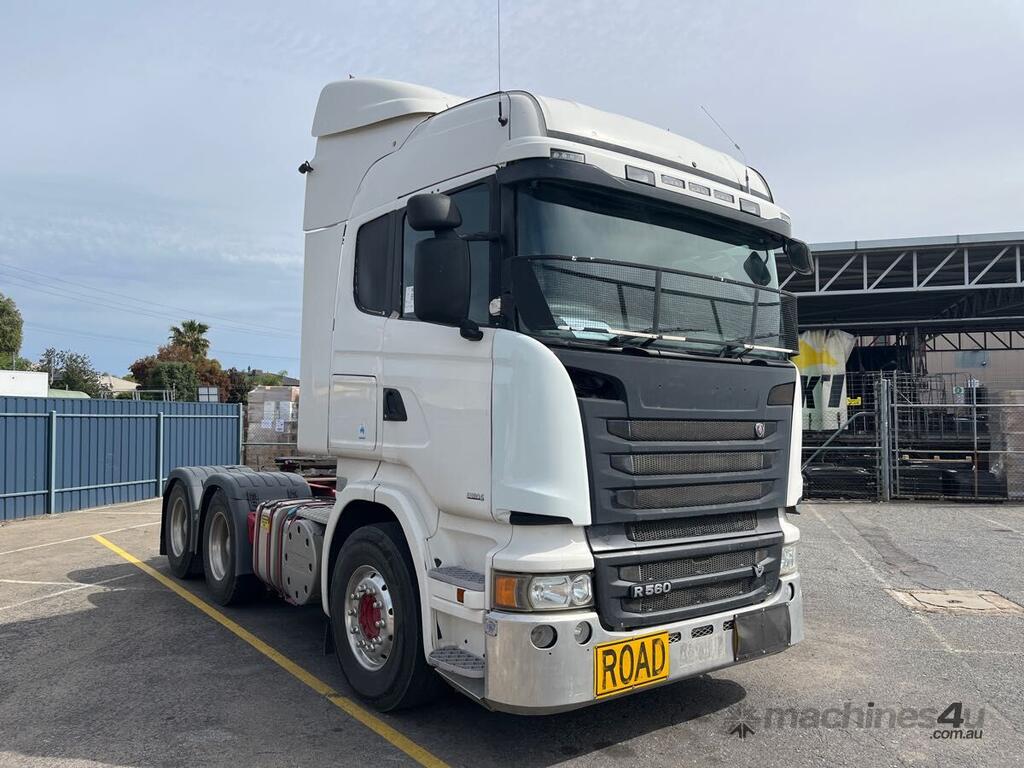 CP: 01/2014,Scania,R560,Prime Mover,Automatic,Airbag,8 Cyl,Diesel Turbo,984872 (Kms. Showing on Odometer),Hourmeter not visible,Colour: White,Rego. No: XS52JI NAT,VIN: YS2R6X5,Key No: P80,Length: 6.6 m,GVM: 26500,GCM: 92000,Sold with No Plates,Key No: P80