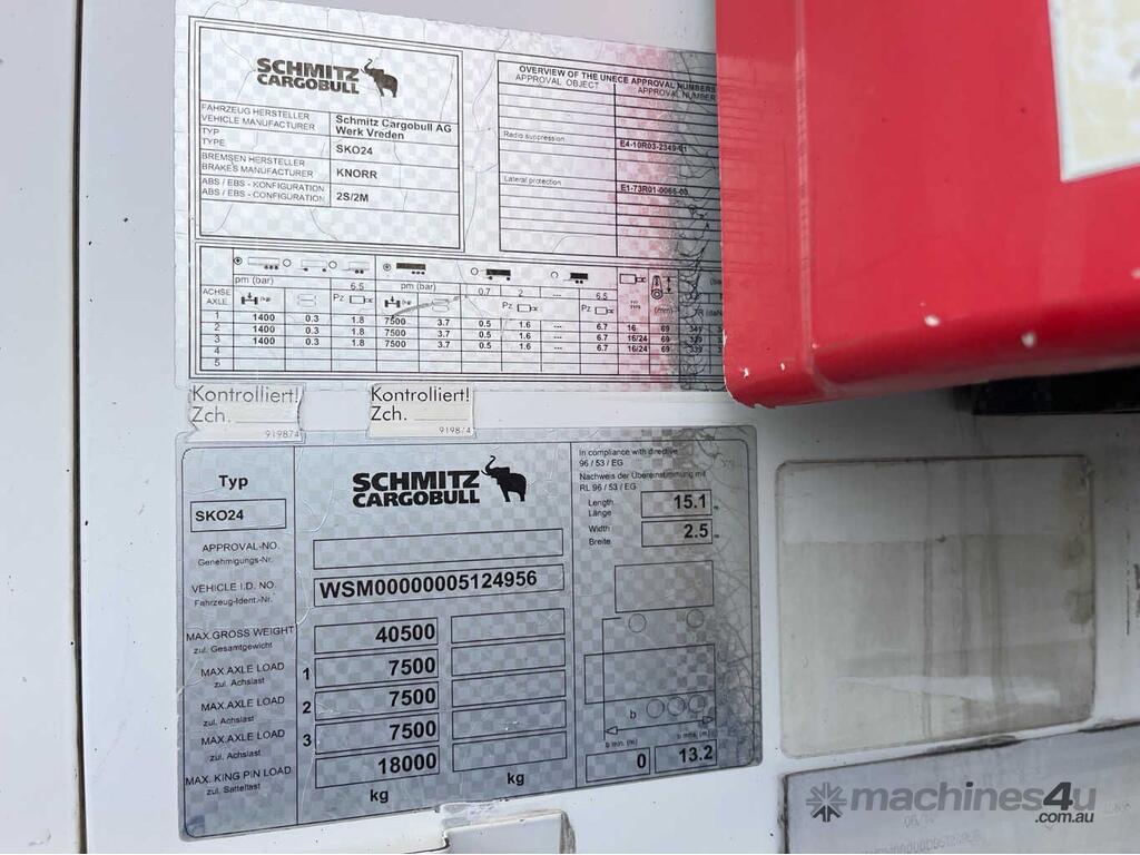 CP: 06/2014,Schmitz,ST3,Tri Axle Refrigerated Pantech Trailer,129257 (Kms. Showing on Hubometer),Colour: Red,Unregistered,VIN: WSM4956,Sold with No Plates