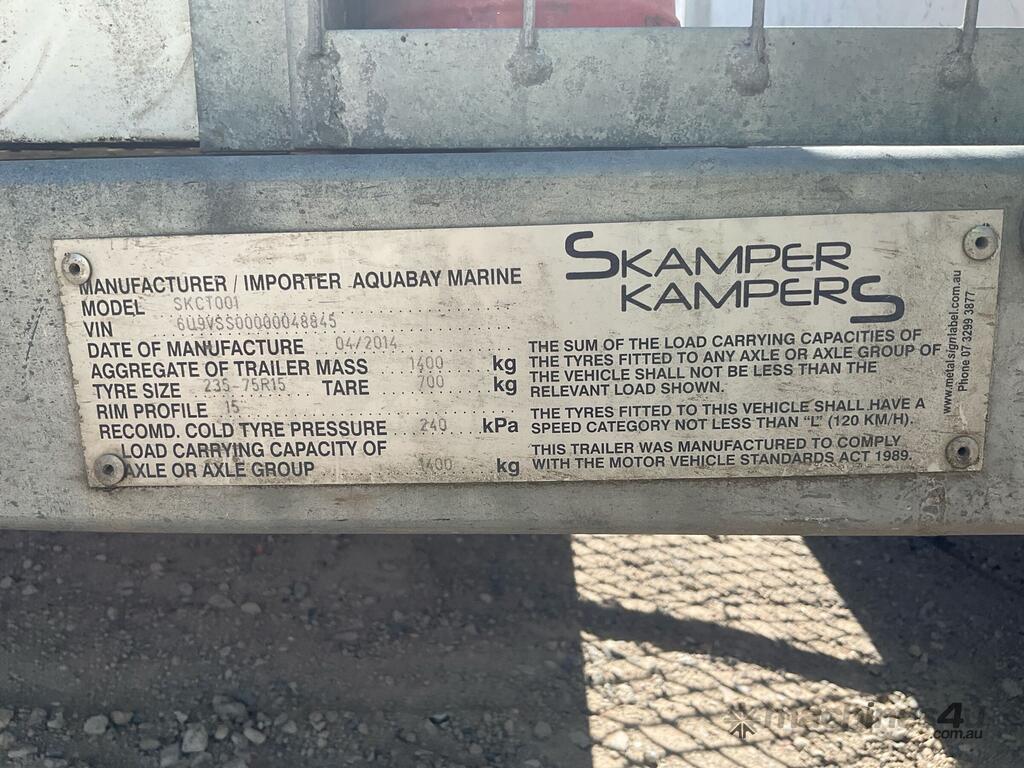 CP: 04/2014,Skampers Kampers,SKC T001,Camper Trailer,Hubometer not visible,Colour: Yellow,Rego. No: NP(Z83009), Unregistered NSW,VIN: 6U9VSS5,Sold with No Plates,WOVR Status: Statutory Write-Off,Incident Type: Impact