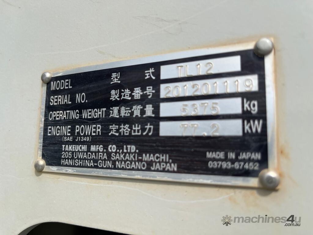 CP: CIRCA 2014,Takeuchi,TL12,Skid Steer (Rubber Tracked),4 Cyl,Diesel Turbo,Odometer not visible,Hourmeter not visible,Colour: Grey,Unregistered,Serial No: ,Sold with No Plates