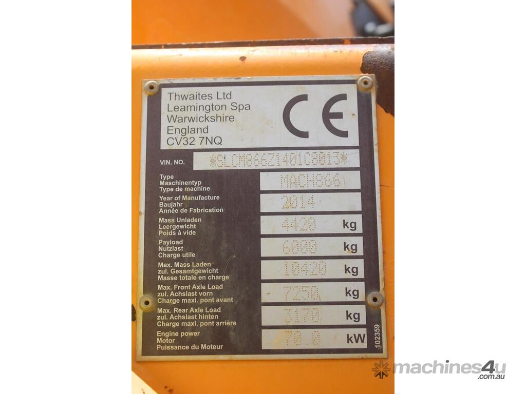 2014 Thwaites 6 Tonne :      $29,000 AUD($31,900 Inc. GST)
