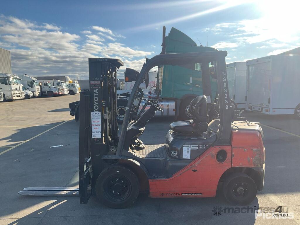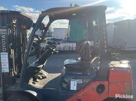 CP: CIRCA 2014,Toyota,32-8FG25,Counter Balance Forklift,4 Cyl,Petrol & LPG (Dual),Odometer not visible,9983 (Hrs. Showing on Hour meter),Colour: Orange,Unregistered,Serial No: 308FG25-42709,Sold with No Plates,Key No: 115