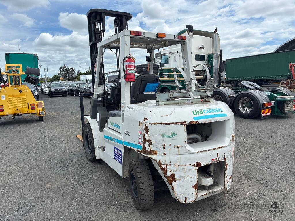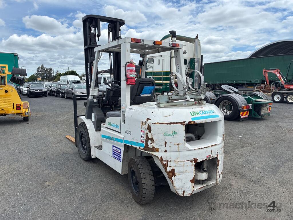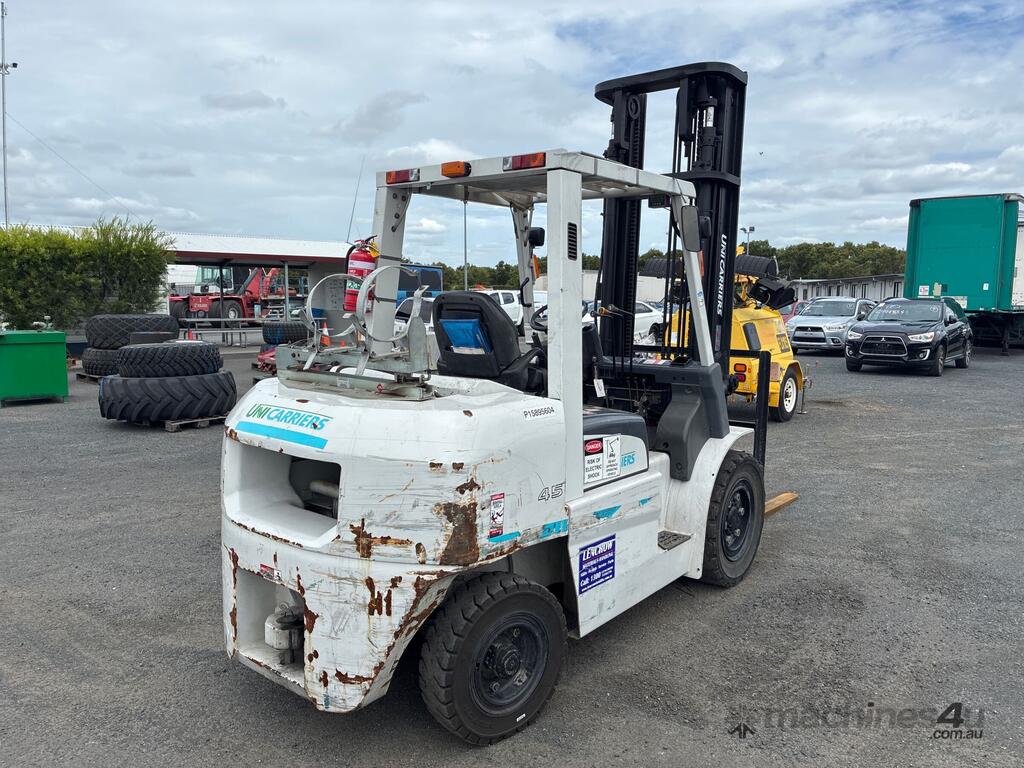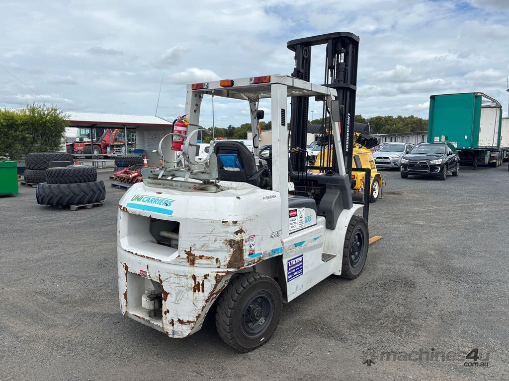 CP: CIRCA 2014,Unicarriers,J1F5F45U,Forklift,Petrol & LPG (Dual),Odometer not visible,1624 (Hrs. Showing on Hour meter),Colour: Grey,Rego. No: 41278C QLD,Serial No: 44W30010,Sold with No Plates,Key No: 90