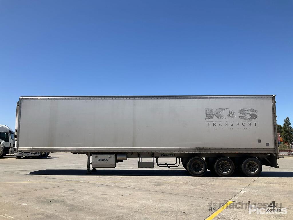 CP: CIRCA 2014,Vawdrey,Tri Axle Refrigerated Pantech Trailer,370545 (Kms. Showing on Hubometer),Colour: White,Rego. No: NP(YQ85UW), Unregistered,VIN: 6HJVAWAUSESE10236,Sold with No Plates