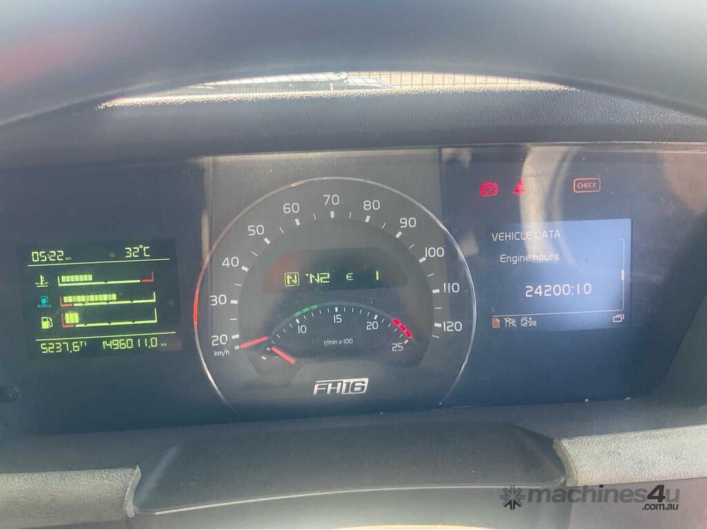 CP: 02/2014,Volvo,FH16,Prime Mover Sleeper Cab,Automatic,Airbags,Engine #: 077227,8 Cyl,Diesel Turbo,1496011 (Kms. Showing on Odometer),24200 (Hrs. Showing on Hour meter),Rego. No: NP(XN58FO), Unregistered NSW,VIN: YV5RP80D7ED200130,Key No: 20S,Length: 7 m,GVM: 27500,Sold with No Plates,Key No: 20S